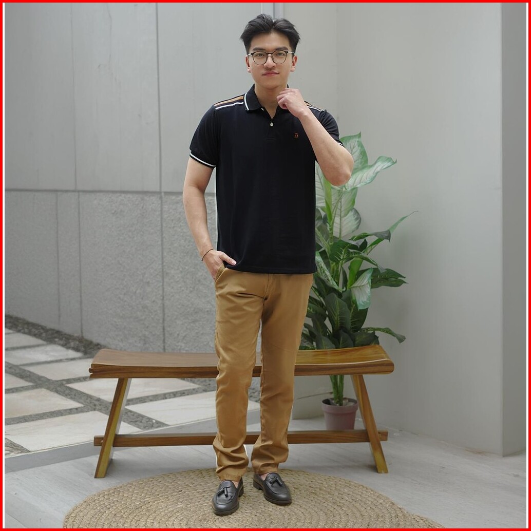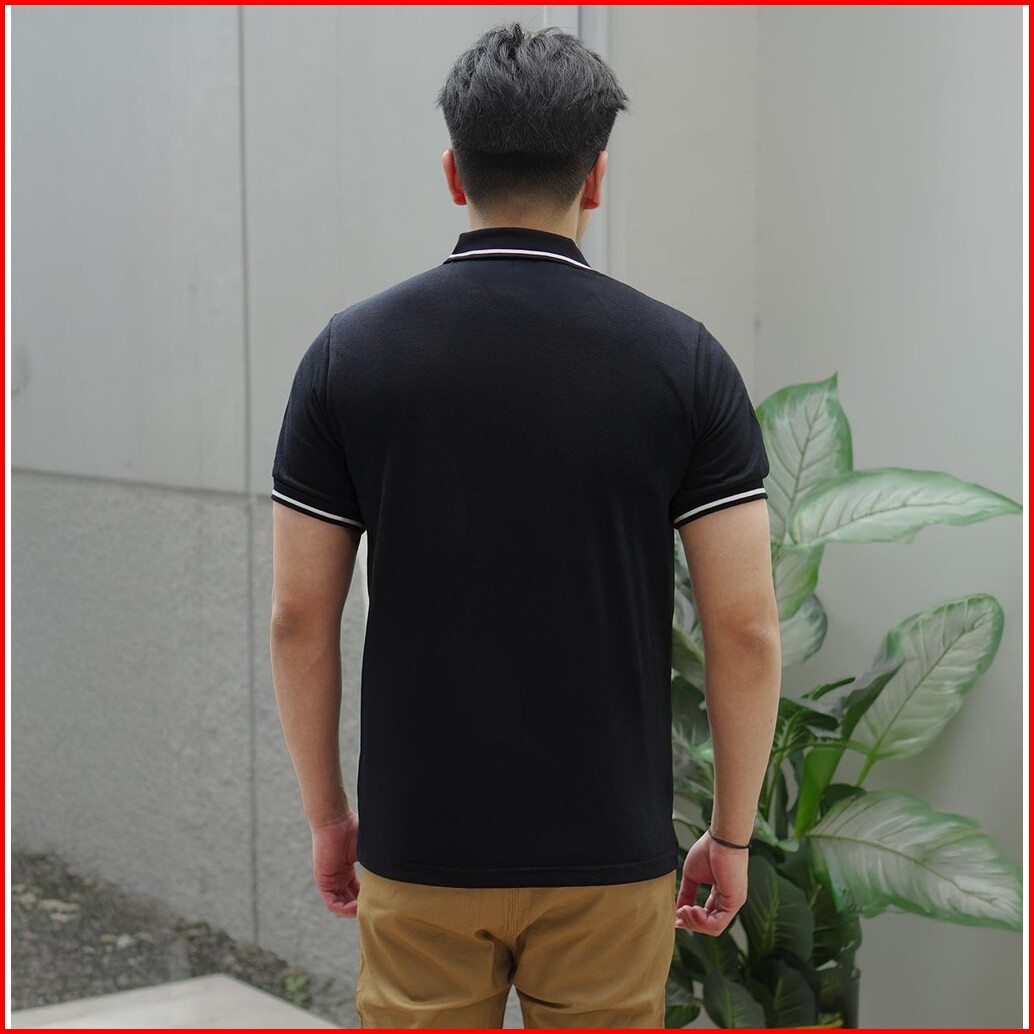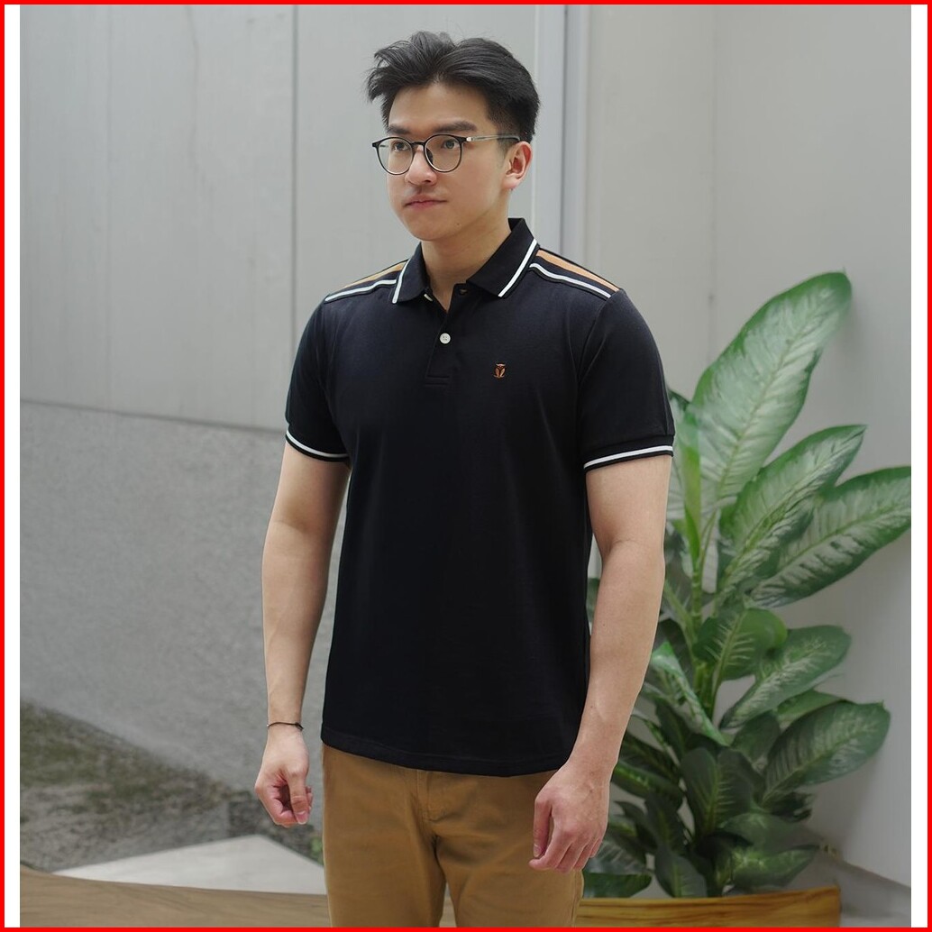 Matsuda Baju Kaos Polo Shirt Dewasa Stripe Pria Kerah Katun Unnan Black