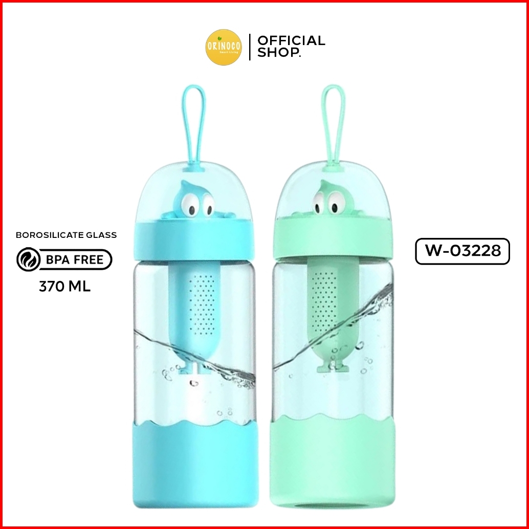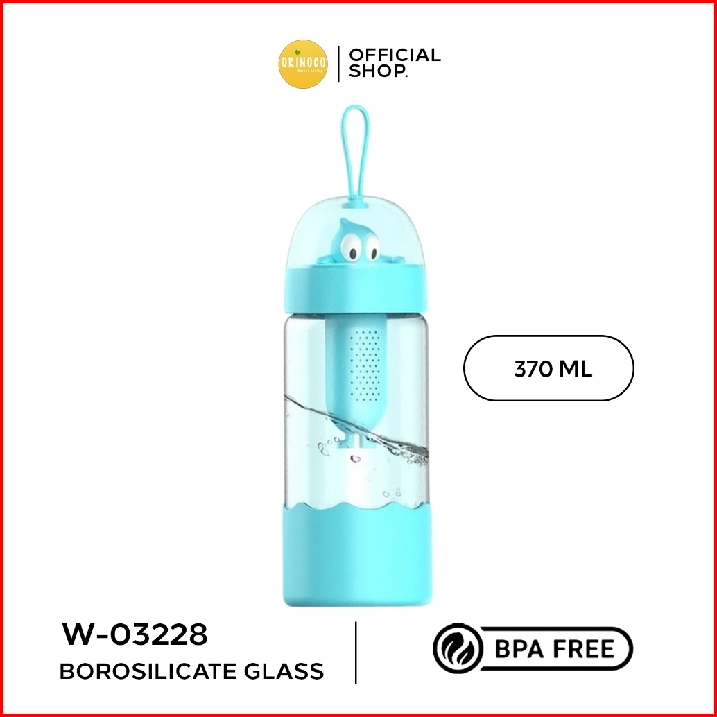 Orinoco Botol Minum Gelas Kaca Borosilicate Dengan Saringan Silikon 370ml W-03228