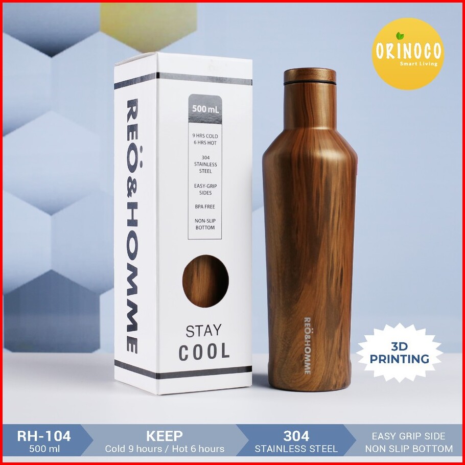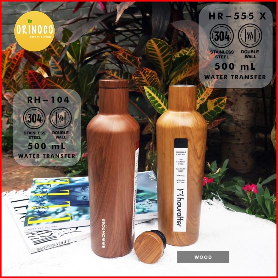 Orinoco Botol Tumbler Stainless Sus304 Motif Serat Kayu Vacuum Flask 500ml Hot Cold