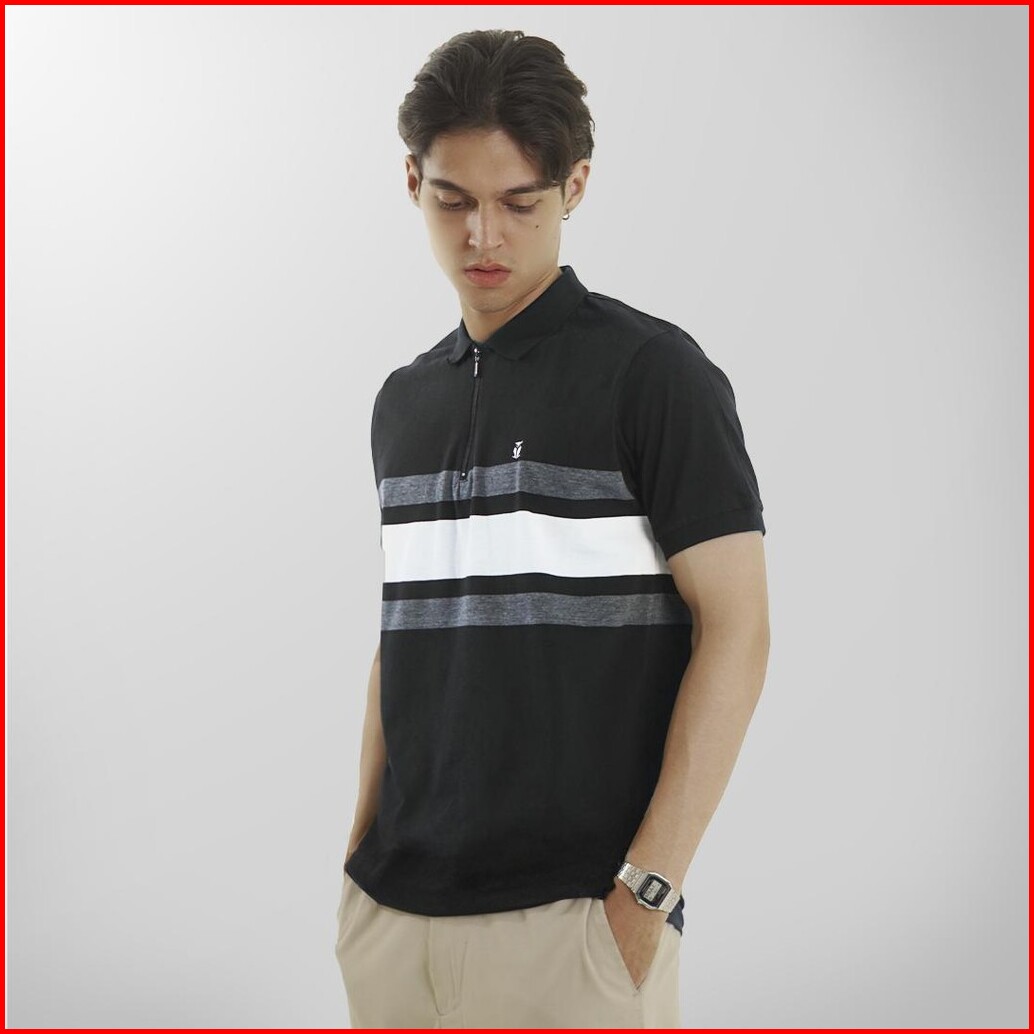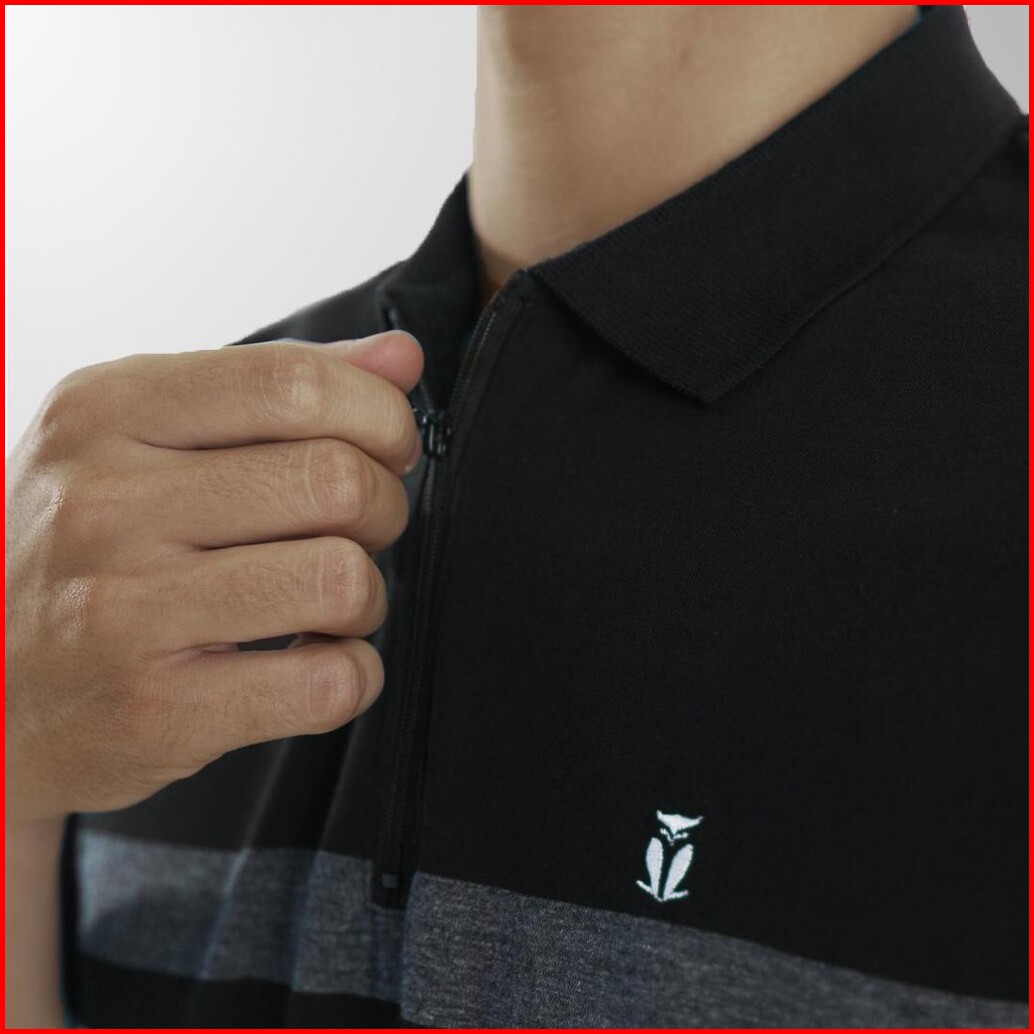Matsuda Baju Kaos Polo Shirt Dewasa Stripe Pria Kerah Katun Yonezawa Black