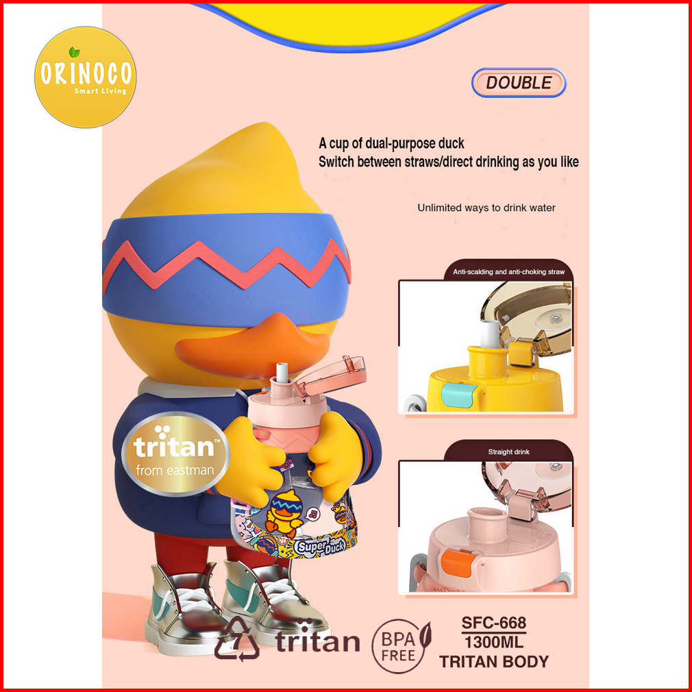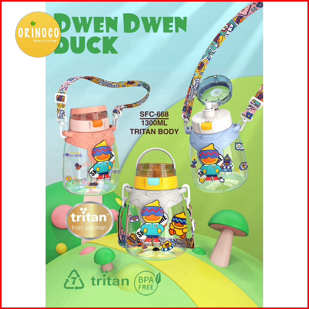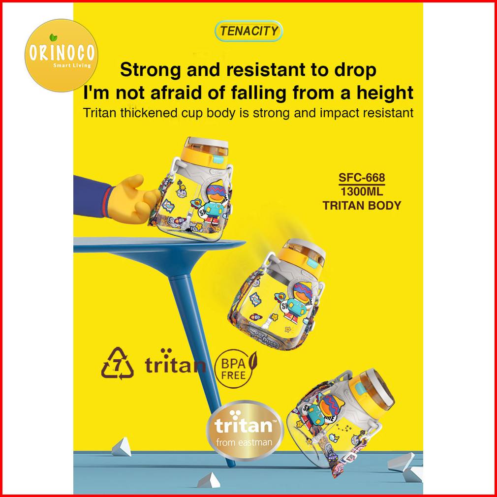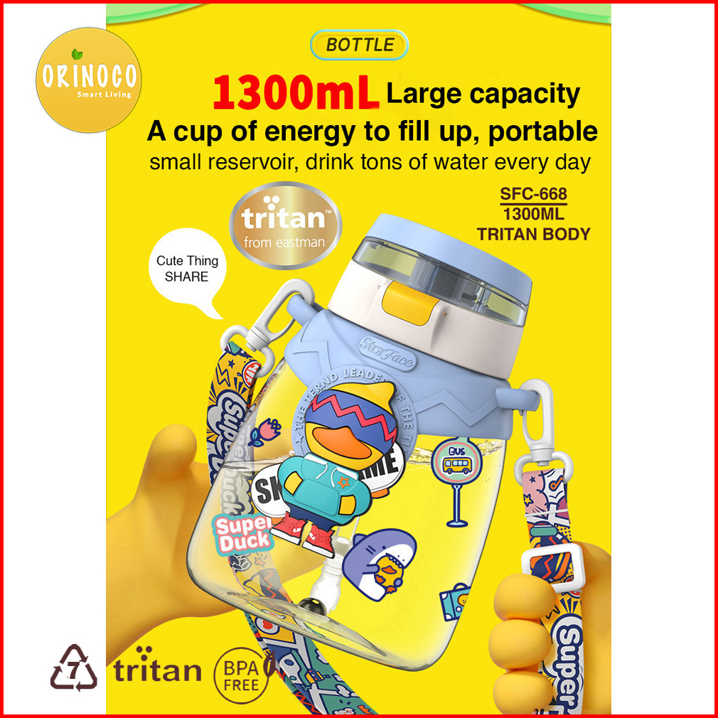 Orinoco Botol Minum Anak Dengan Sedotan Tali Panjang Anti Tumpah Plastik Tritan 1300 Ml Sfc-668