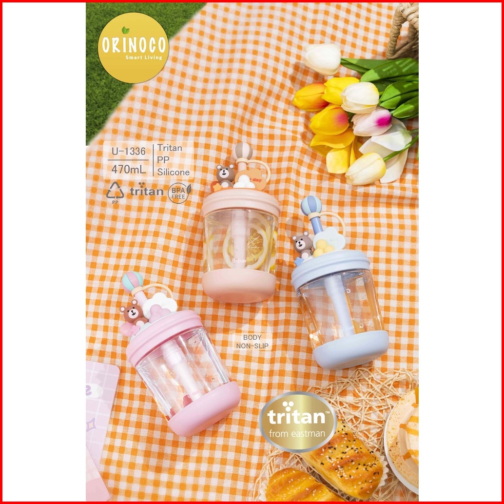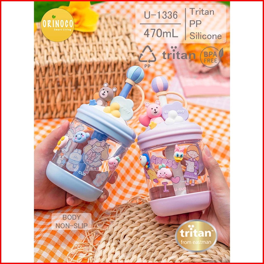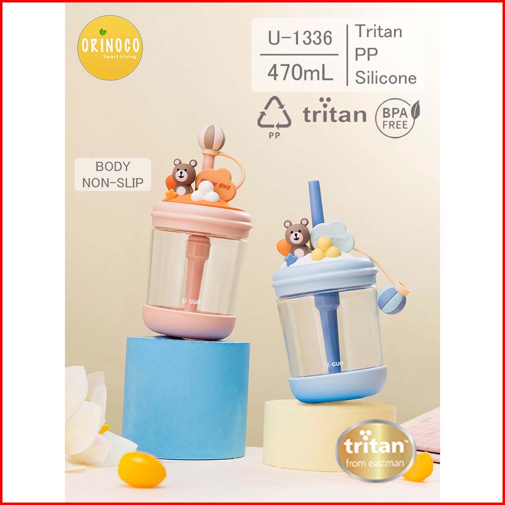 Orinoco Botol Minum Anak Tritan U-1336 With Straw Leakproof 470ml