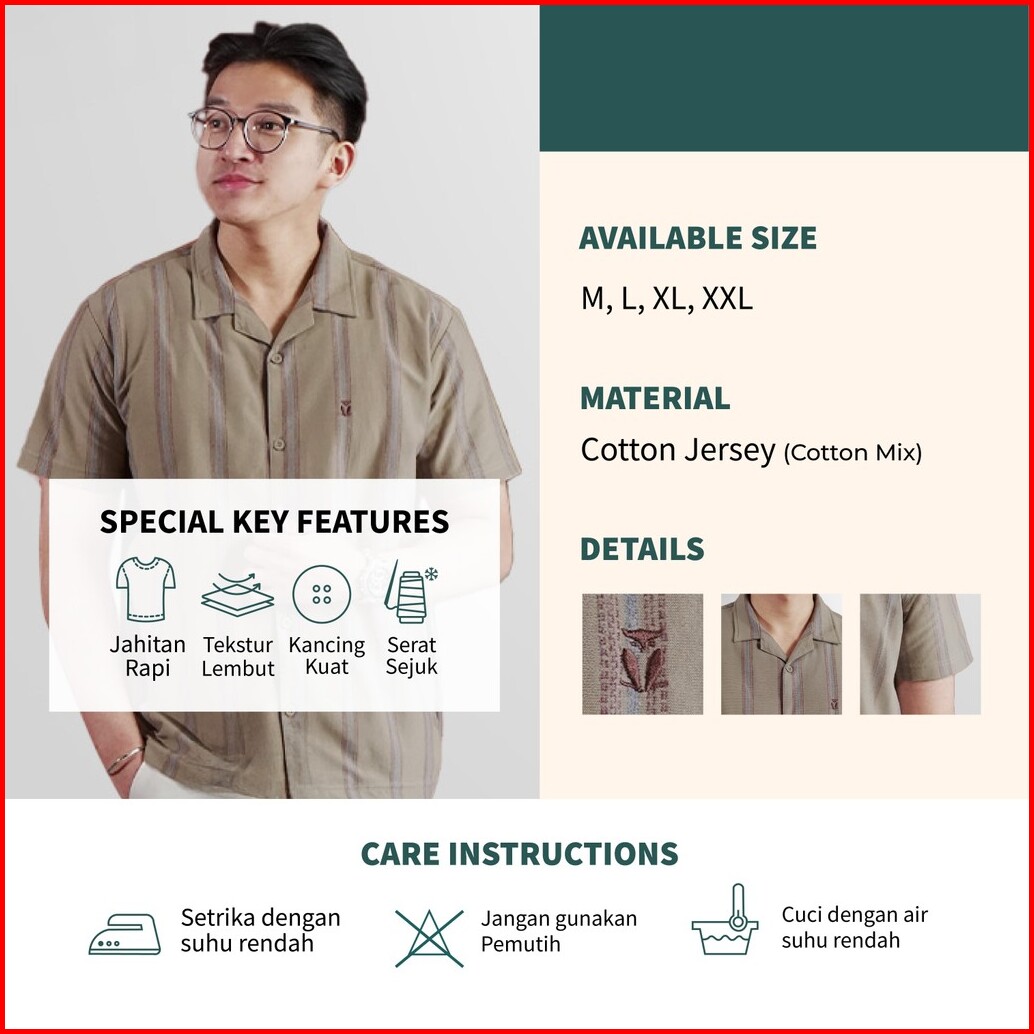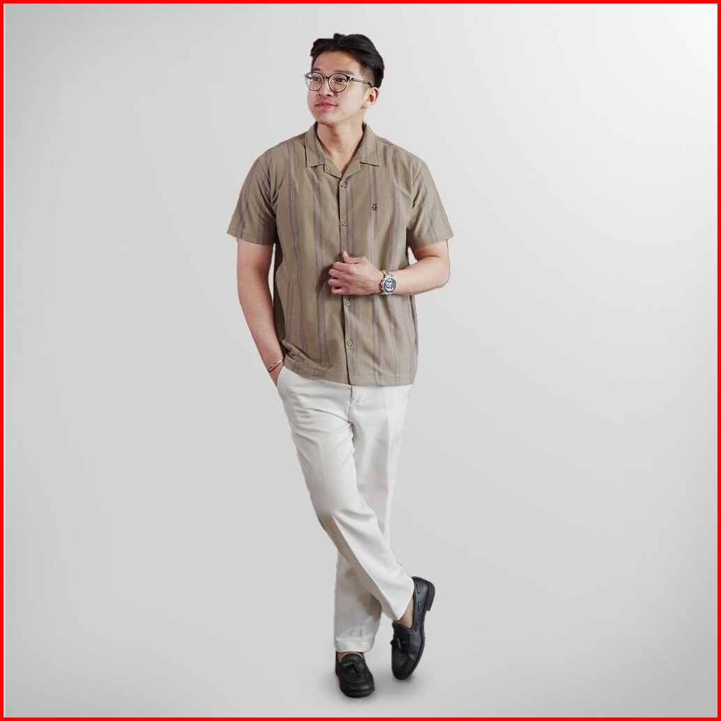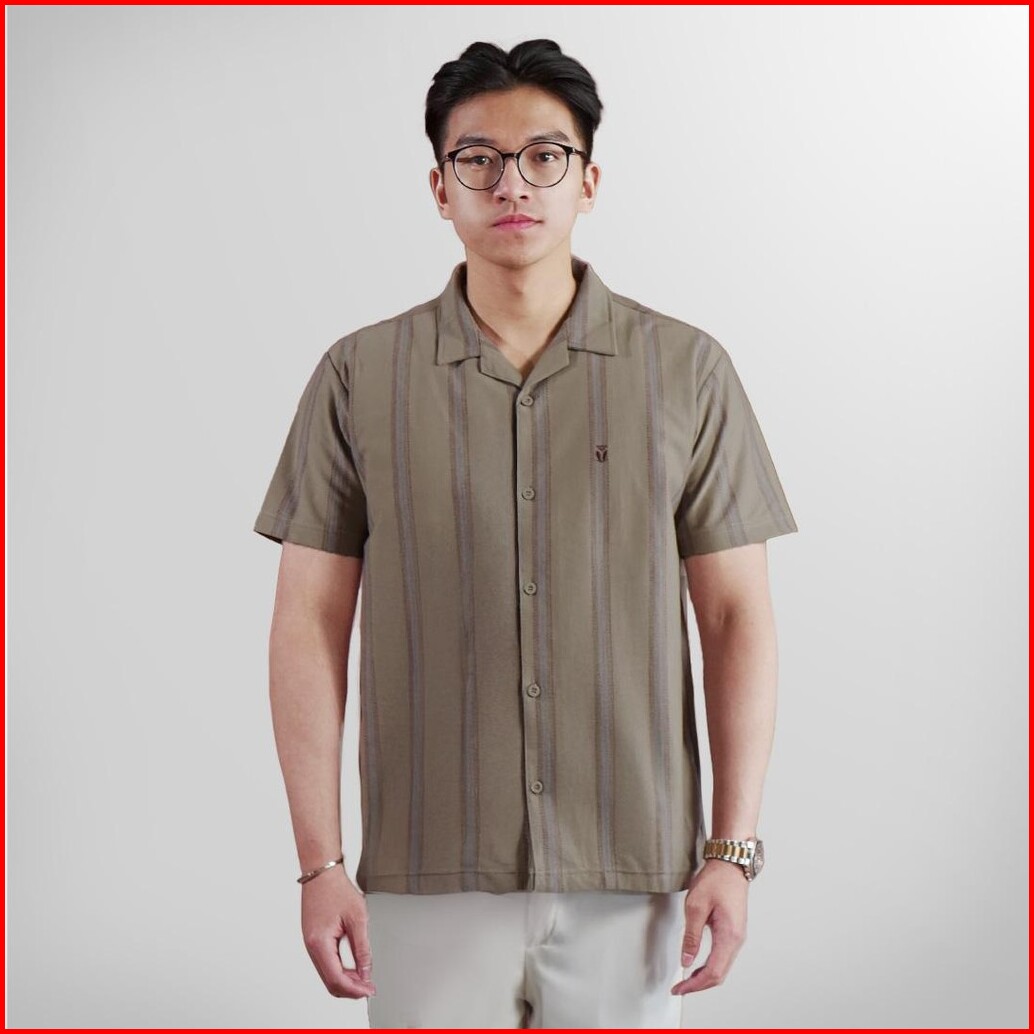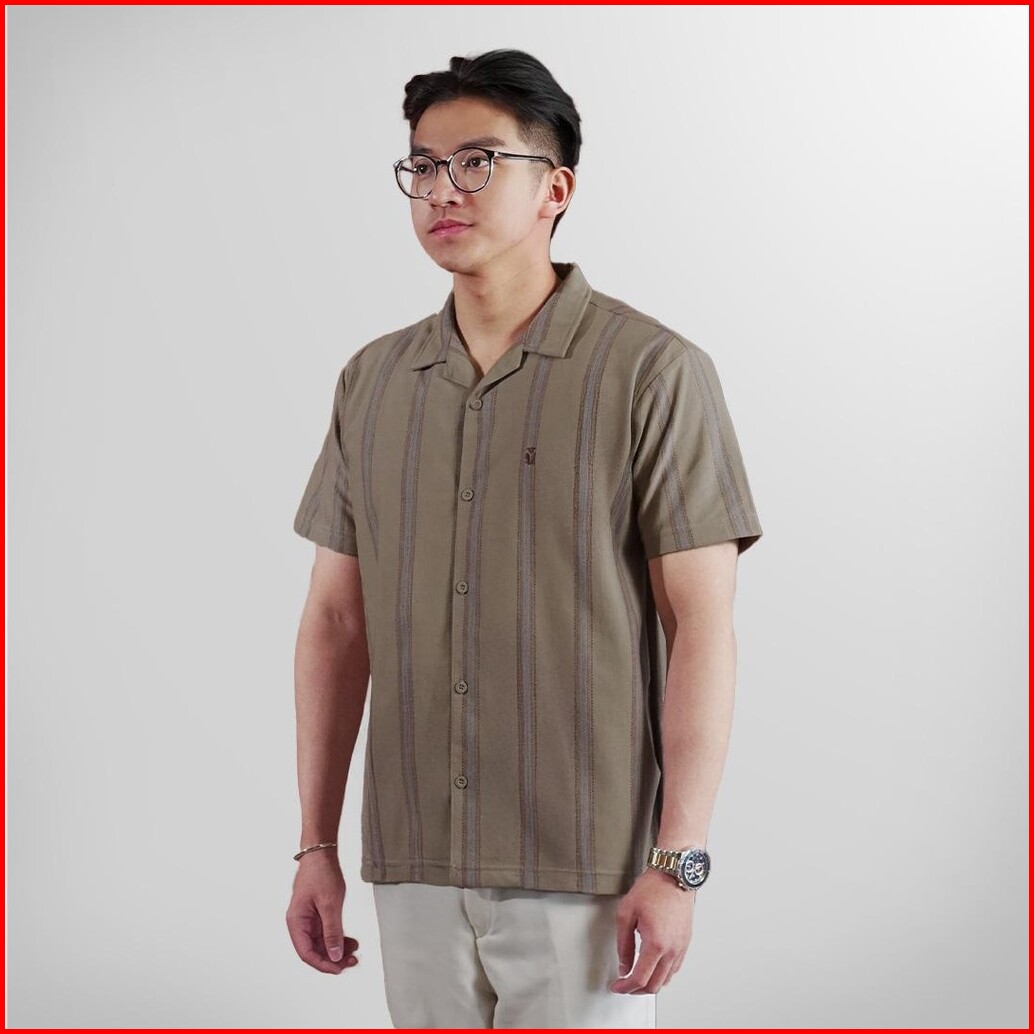 Matsuda Yamanashi Cobble Stone Kemeja Pria Stripe Lengan Pendek