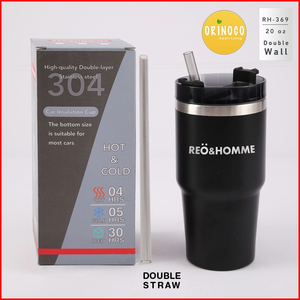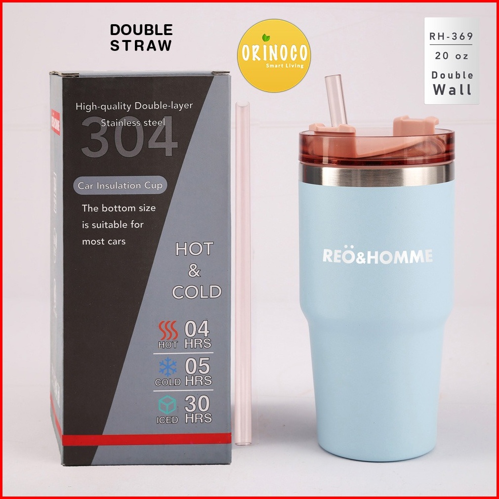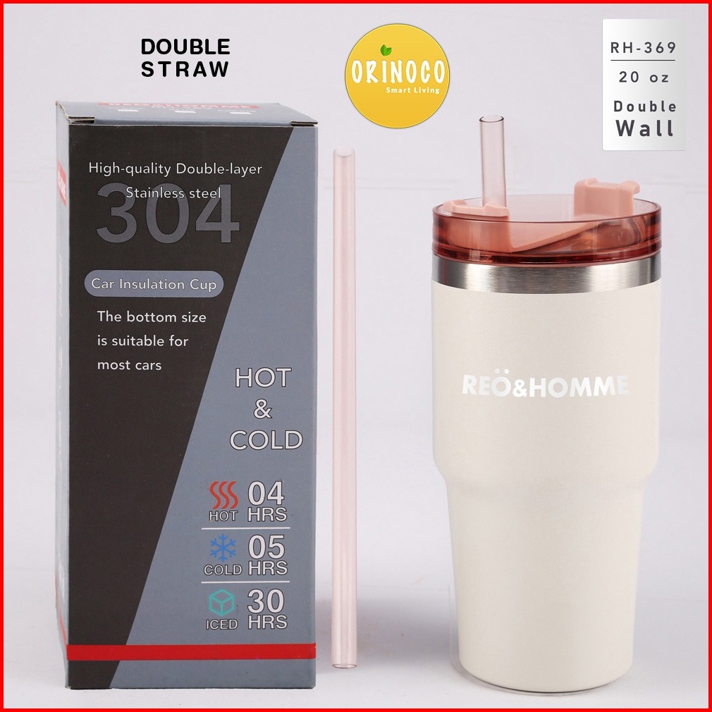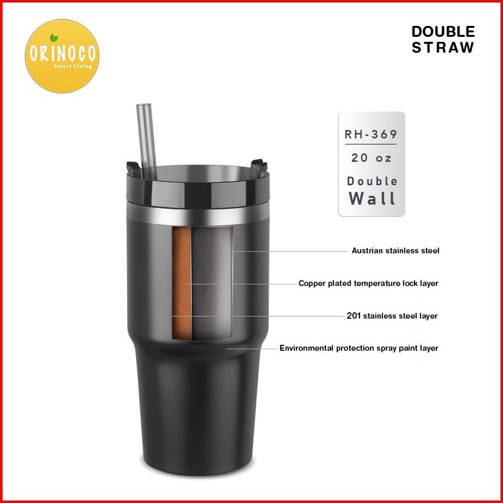 Orinoco Botol Mug Thermos Rh-369 Vacuum Flask Double Wall With Straw Hot Cold Mug Kopi 20 Oz