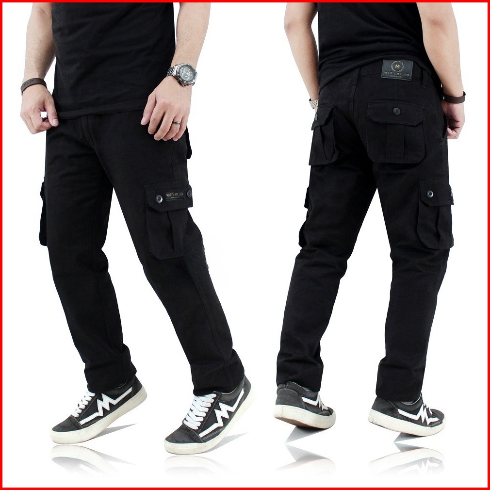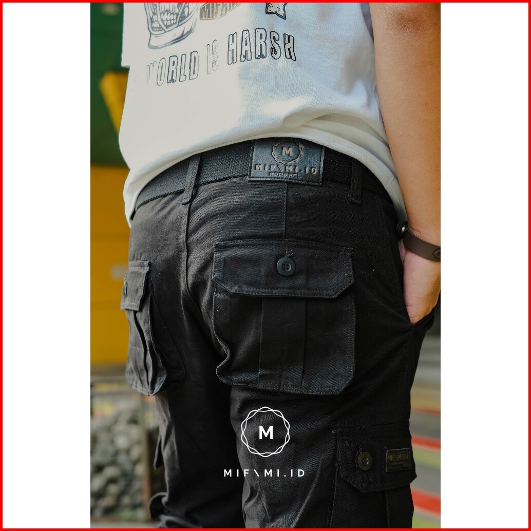 Mifami.id Celana Cargo Panjang Pria Warna Hitam