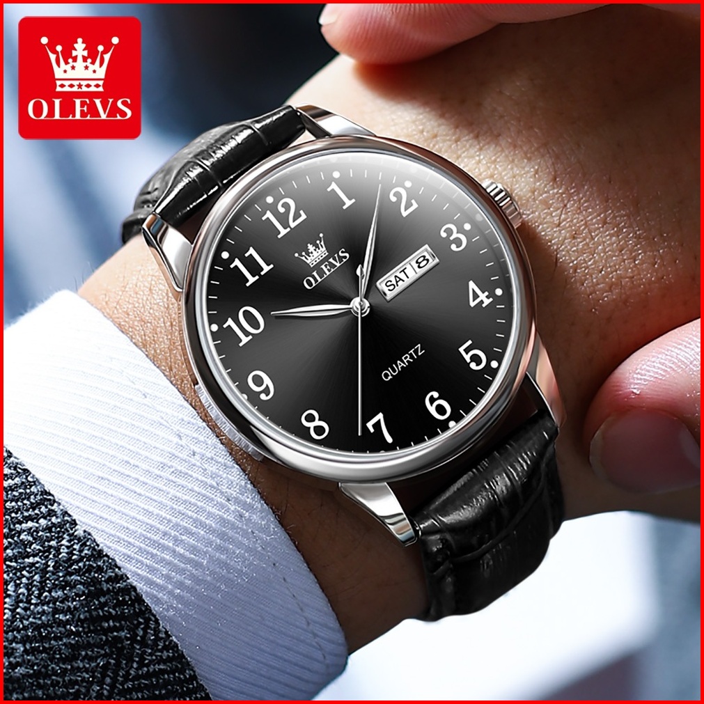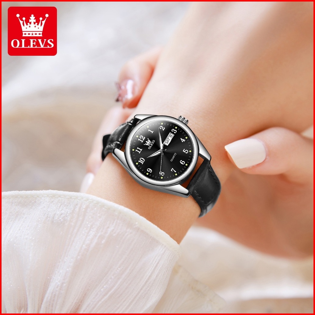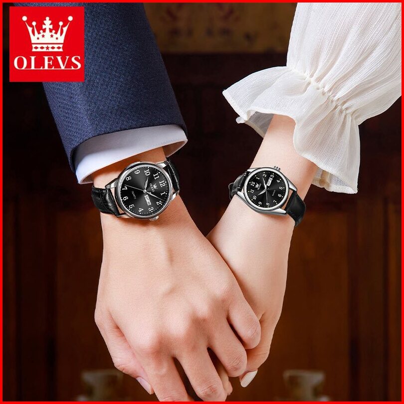Olevs Jam Tangan Couple Original Kulit Strap Analog Anti Air Terbaru Elegan Fashion Couple Watch