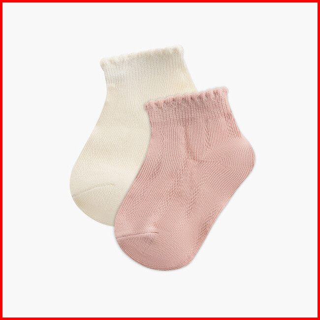 Babyshop Juniors Textured Ankle Length Socks With Scallop Hem - Set Of 2