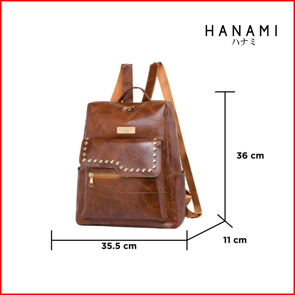 Hanami Tas Ransel Wanita Kulit Backpack Premium Coklat Rilvira Besar Sekolah Kuliah Korea Ta992b7