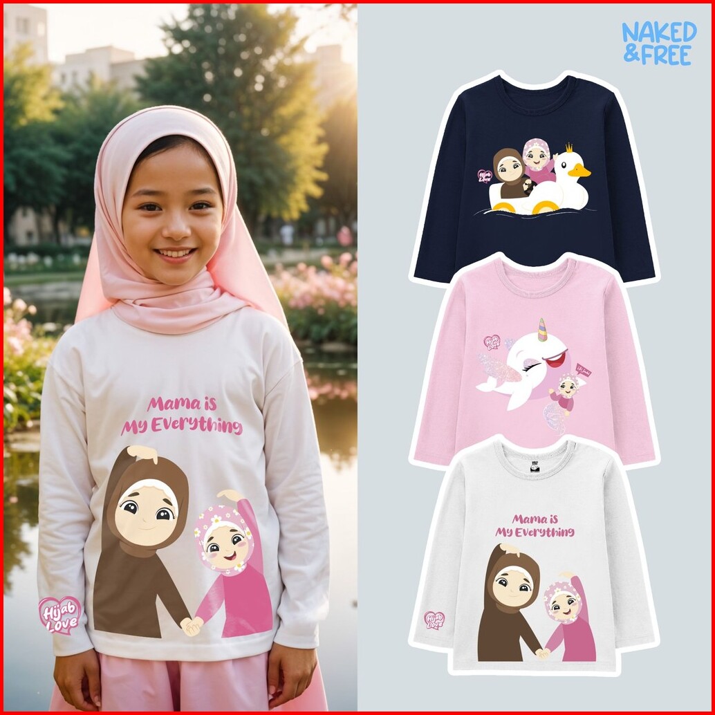 Naked Free Baju Kaos Lengan Panjang Anak Perempuan Hijab Love Series Fun With Uniwhal Bahan Katun
