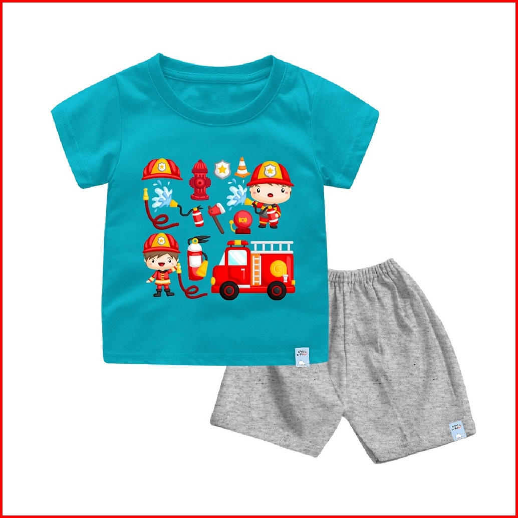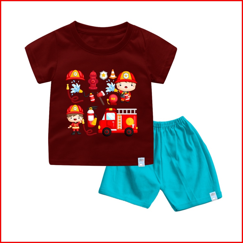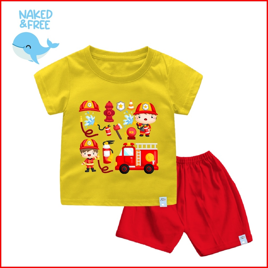 Naked Free Kaos Setelan Bayi Anak Pemadam Kebakaran Katun Combed 30s Lembut Nyaman