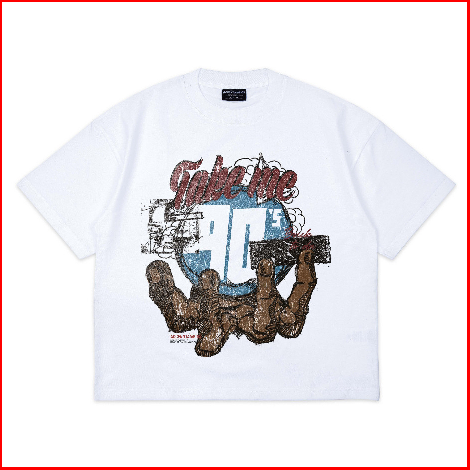 Accentambios Boxy Oversized T-shirt Take Me 90s White - Cotton Combed 20s