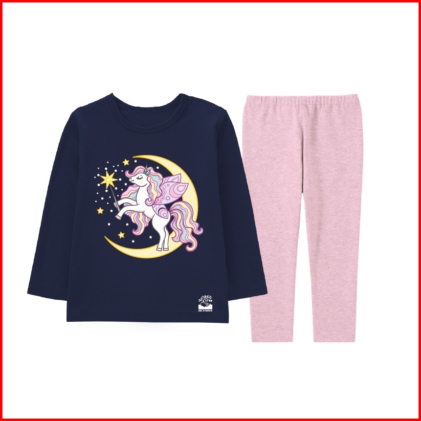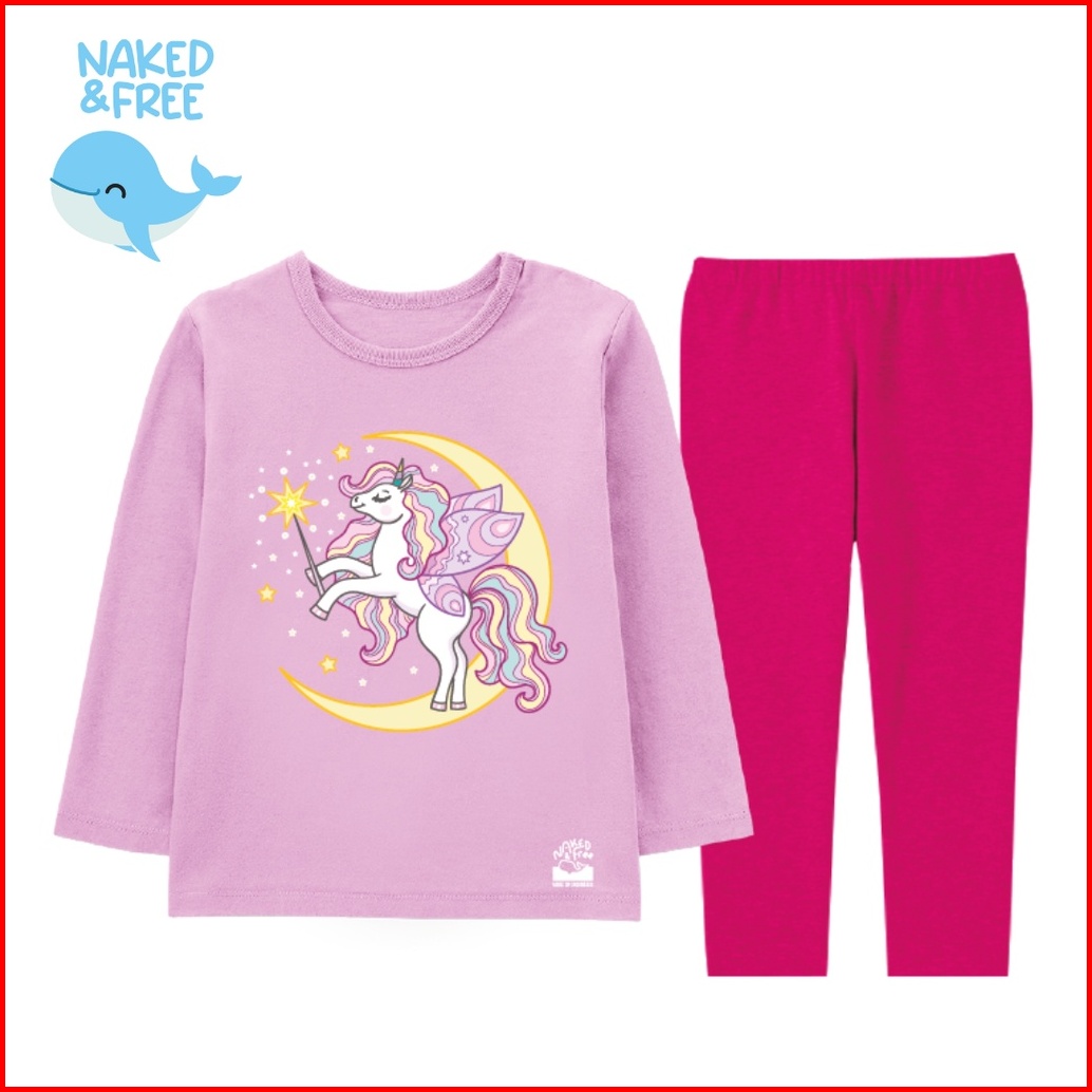 Naked Free Piyama Lengan Panjang Anak Perempuan Unicorn Moon Bahan Katun Combed 30s