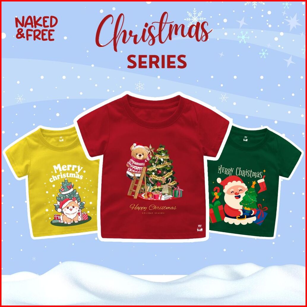 Naked Free Baju Kaos Natal Bayi Anak Remaja Dewasa Series Paw Christmas Decoration Bahan Katun 30s