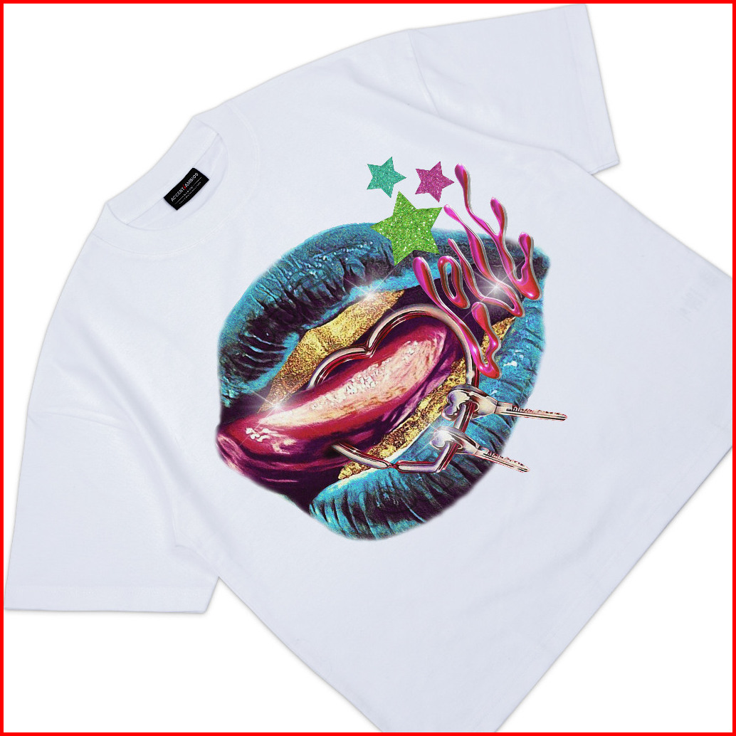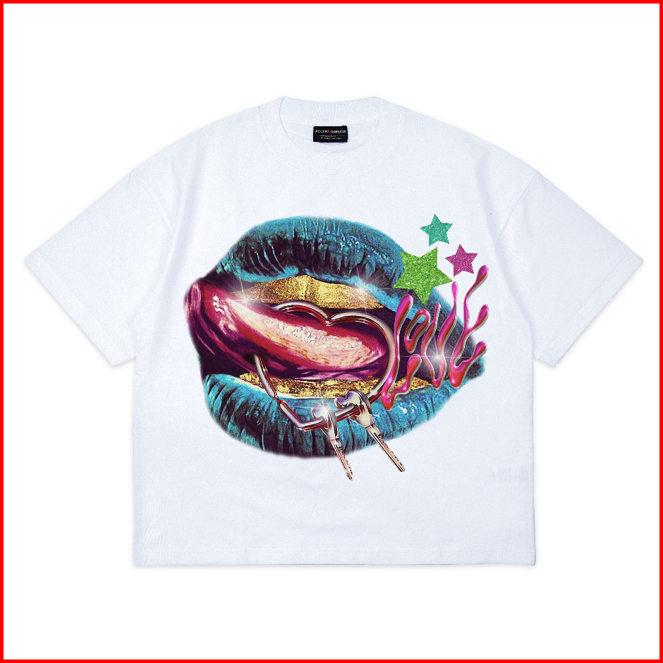 Accentambios Boxy Oversized Tshirt Rainbow Lips White - Cotton Combed 20s