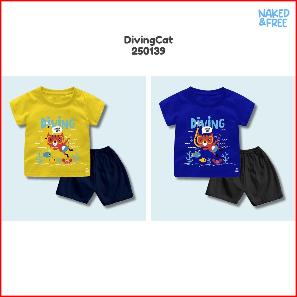 Naked Free Setelan Pendek Bayi Anak Laki-laki Animal Series Police Bear Bahan Katun Combed Ani-1