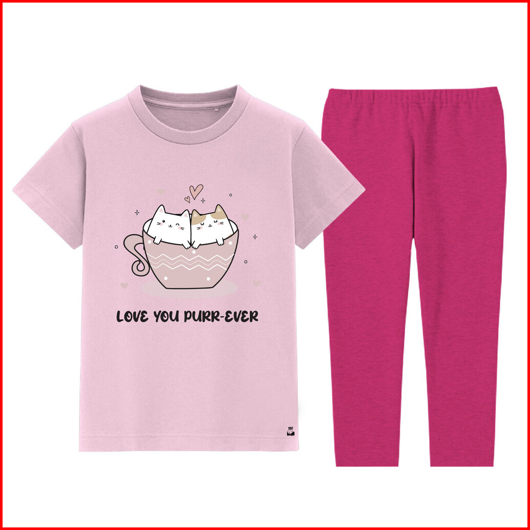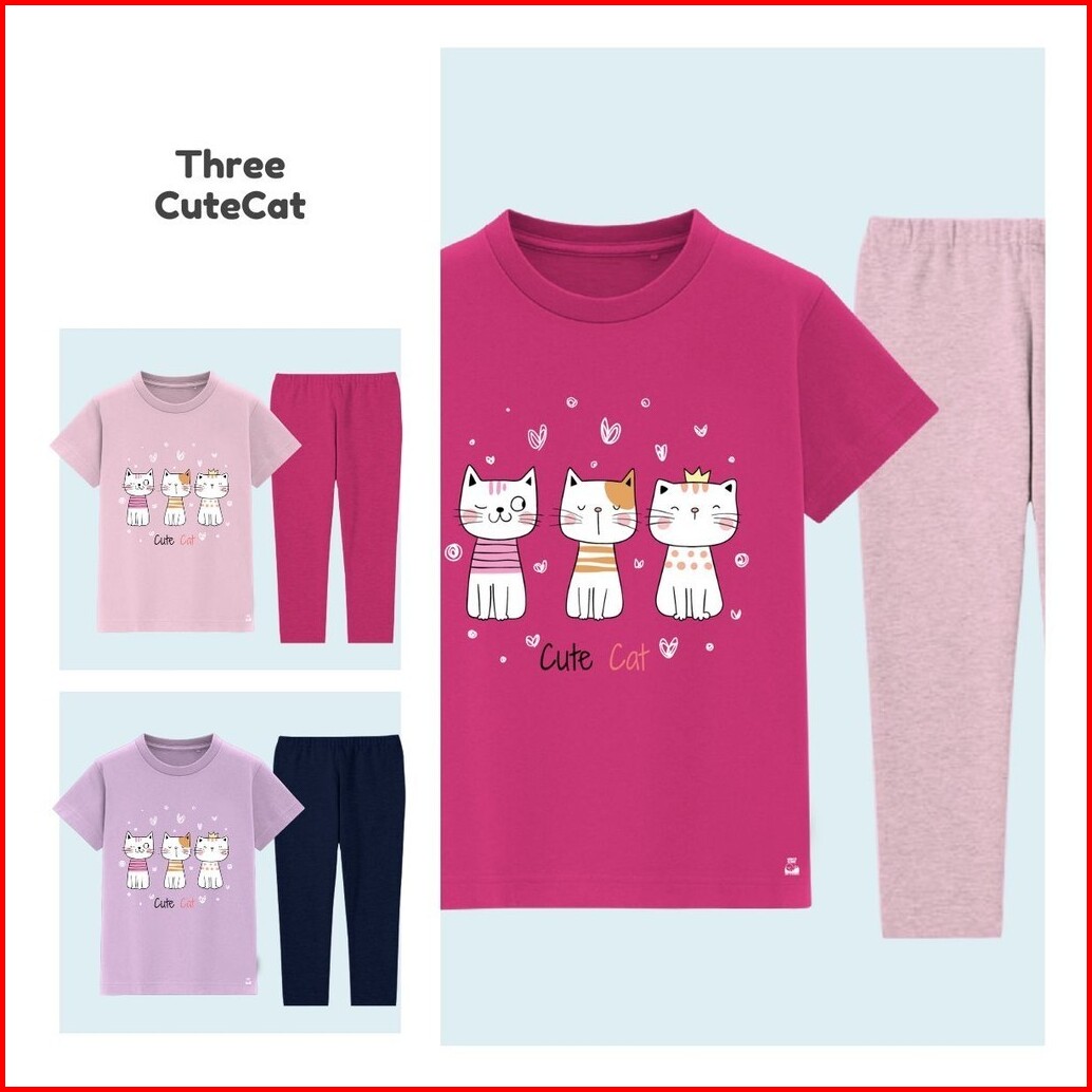 Naked Free Setelan Pendek Anak Perempuan Series Purr Ever Three Cute Cat Usia 2 Sampai 8 Tahun