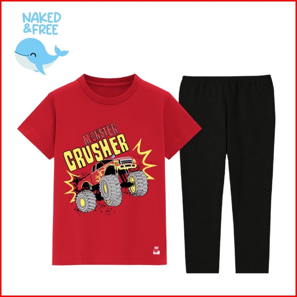 Naked Free Piyama Pendek Anak Series Monster Crusher Usia 2-8 Tahun Bahan Katun Combed 30s