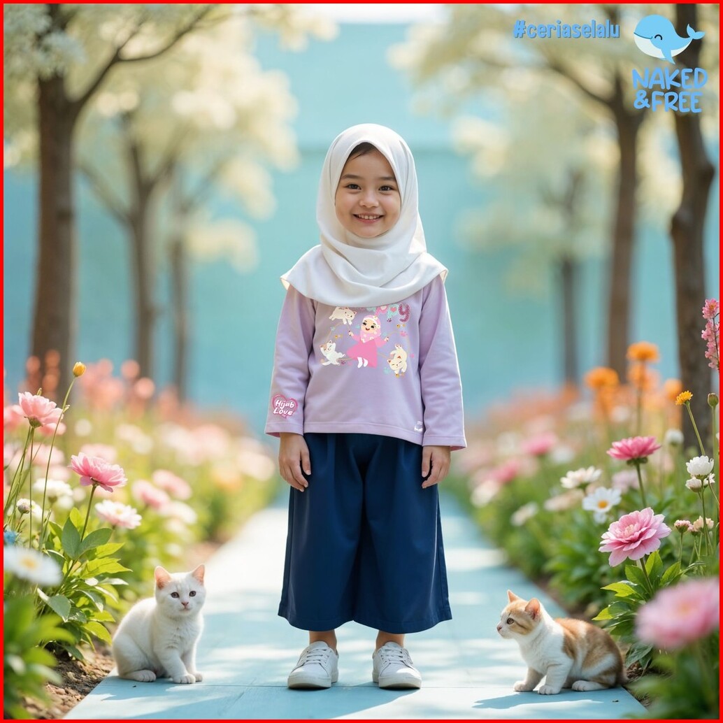 Naked Free Baju Kaos Lengan Panjang Anak Perempuan Hijab Love Series Paws Smile Bahan Katun Hij-1