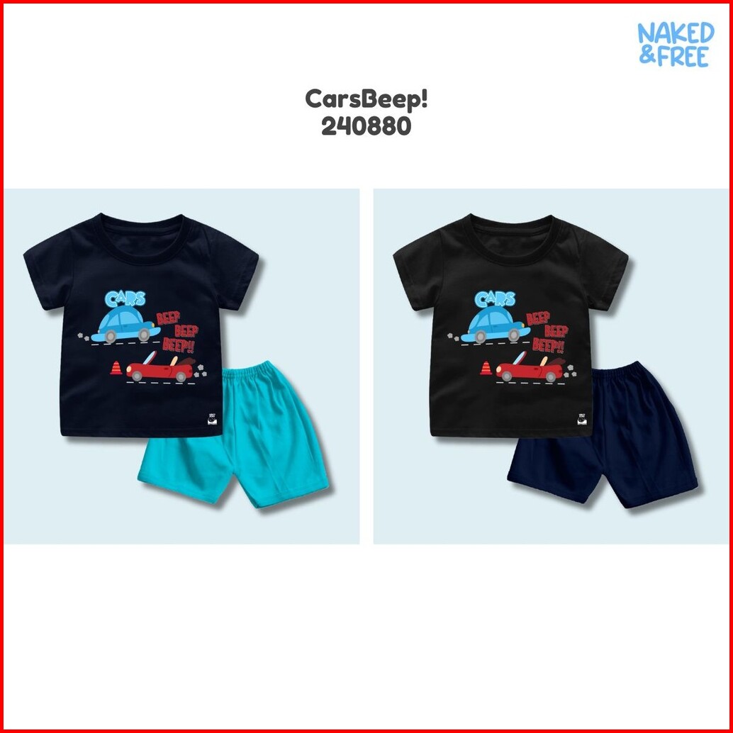 Naked Free Setelan Pendek Bayi Anak Laki-laki Boys Series Excavator Beep Beep Bahan Katun 30s