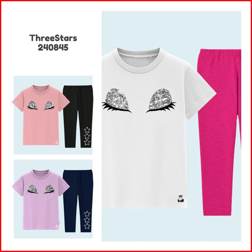 Naked Free Setelan Pendek Anak Perempuan Glitter Eye Series Cute Lovely Be Kind Bahan Katun 30s