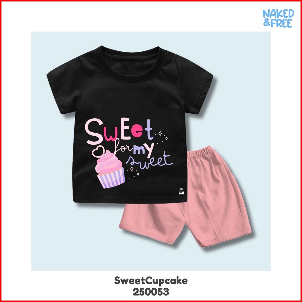Naked Free Setelan Pendek Bayi Anak Perempuan Typography Series Sweet Cake Girl Bahan Katun Combed