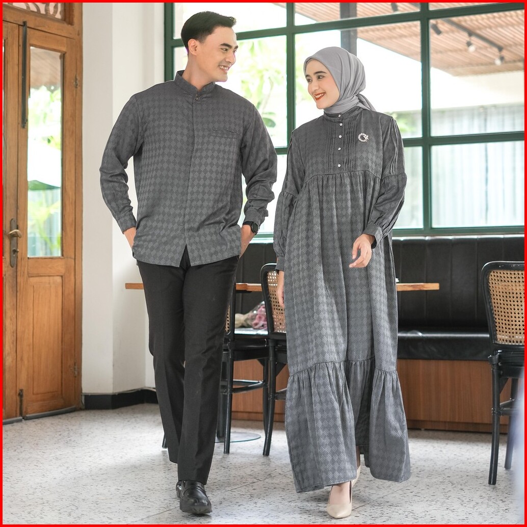 Ventedaily - Vee Couple Terbaru Gamis Kemeja Lengan Panjang Lebaran Couple Kondangan 2025