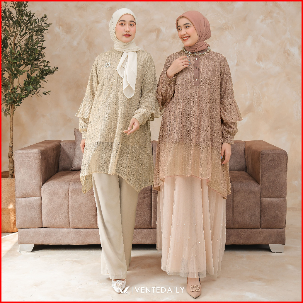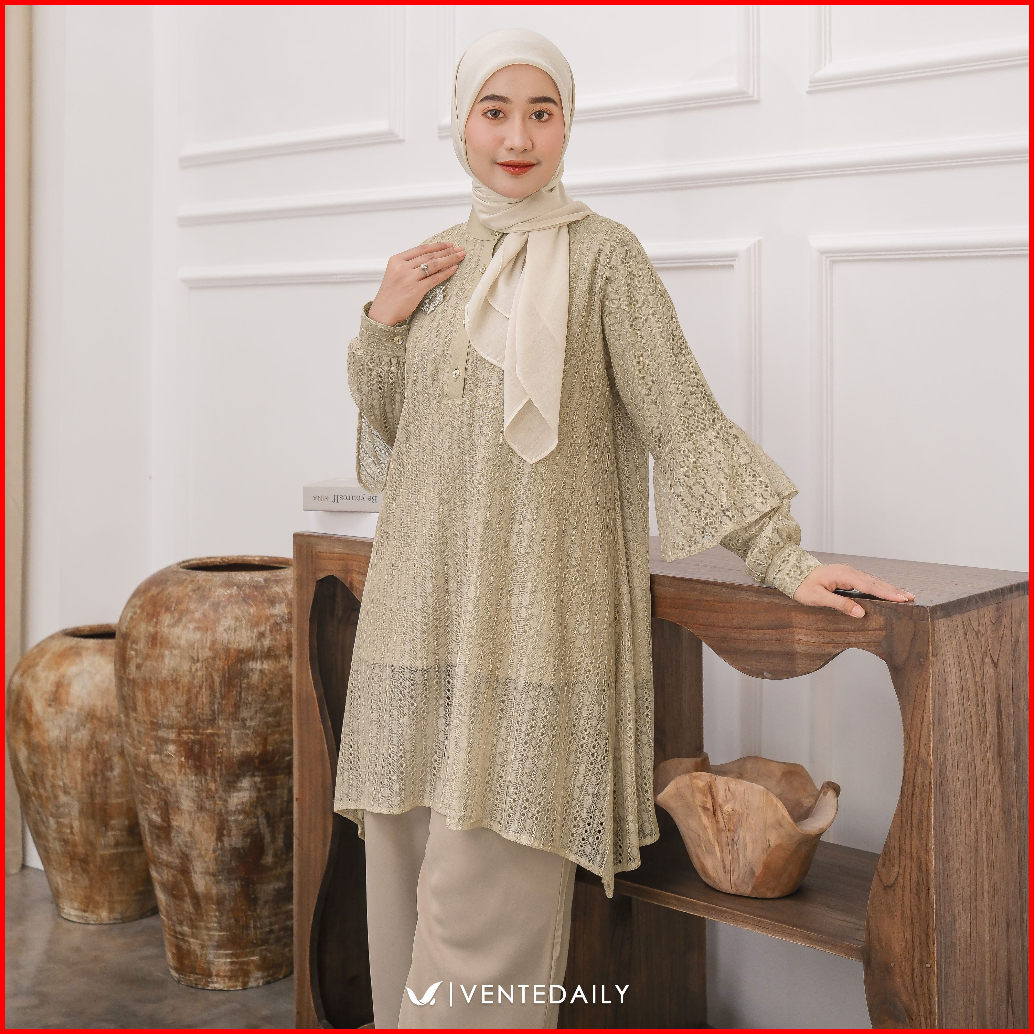 Ventedaily - Alesha Tunik Atasan Wanita Outfit Kondangan Kekinian Terbaru Brukat With Inner