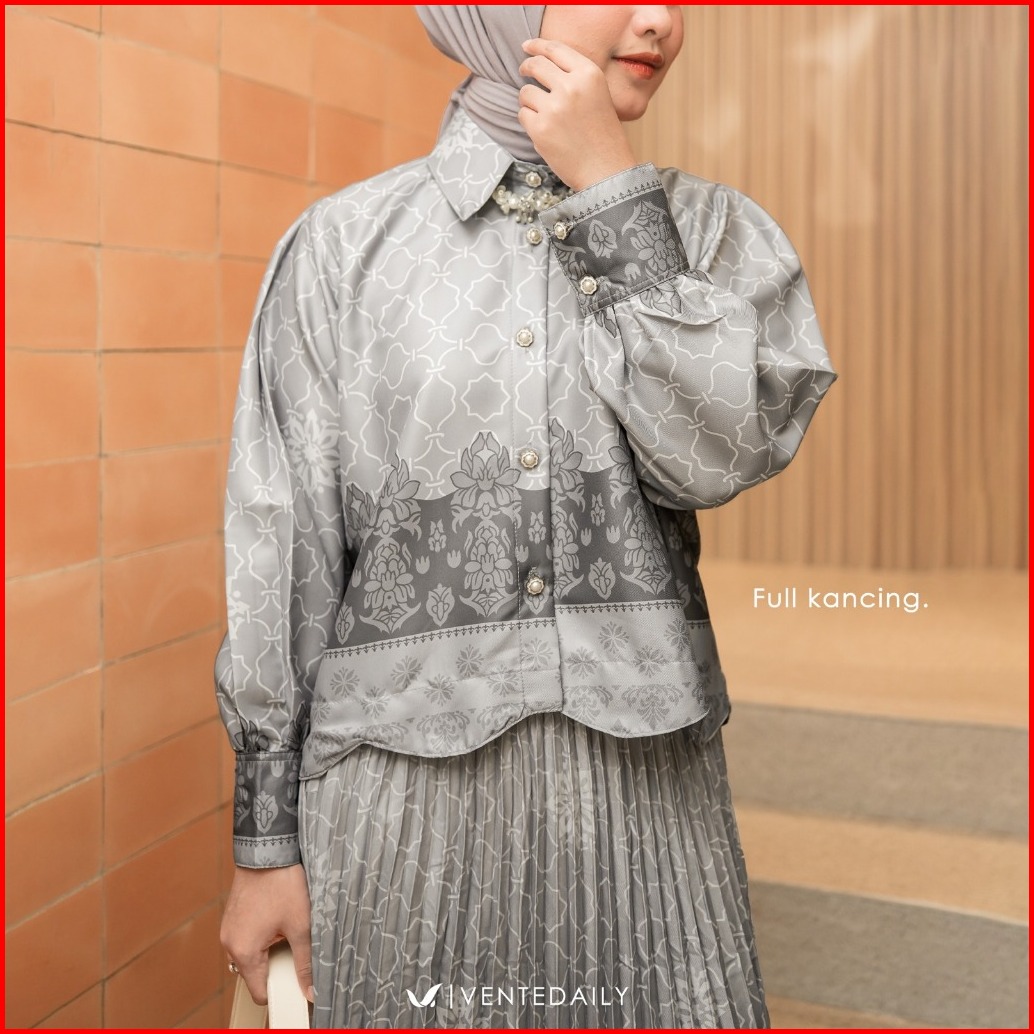 Ventedaily - Tarina Set Rok Plisket Motif Korean Style Ootd Casual Mewah Kekinian Busui Terbaru