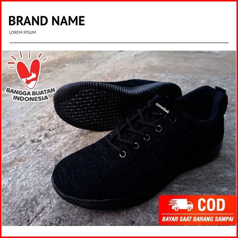 Comdestal Sepatu Sekolah Hitam Polos Pria Wanita Sepatu Hitam Polos