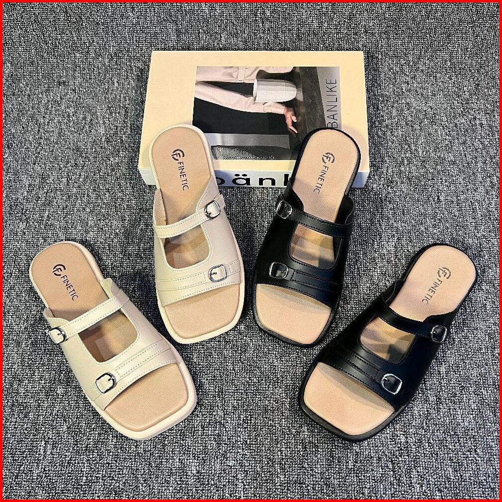 Finetic Sandal Slop Wanita Kekinian Platform Series Karet Sendal Flat