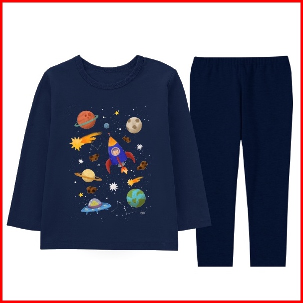 Naked Free Piyama Baju Tidur Anak Seri Luar Angkasa Usia 2 Sampai 8 Tahun Bahan Katun Combed 30s