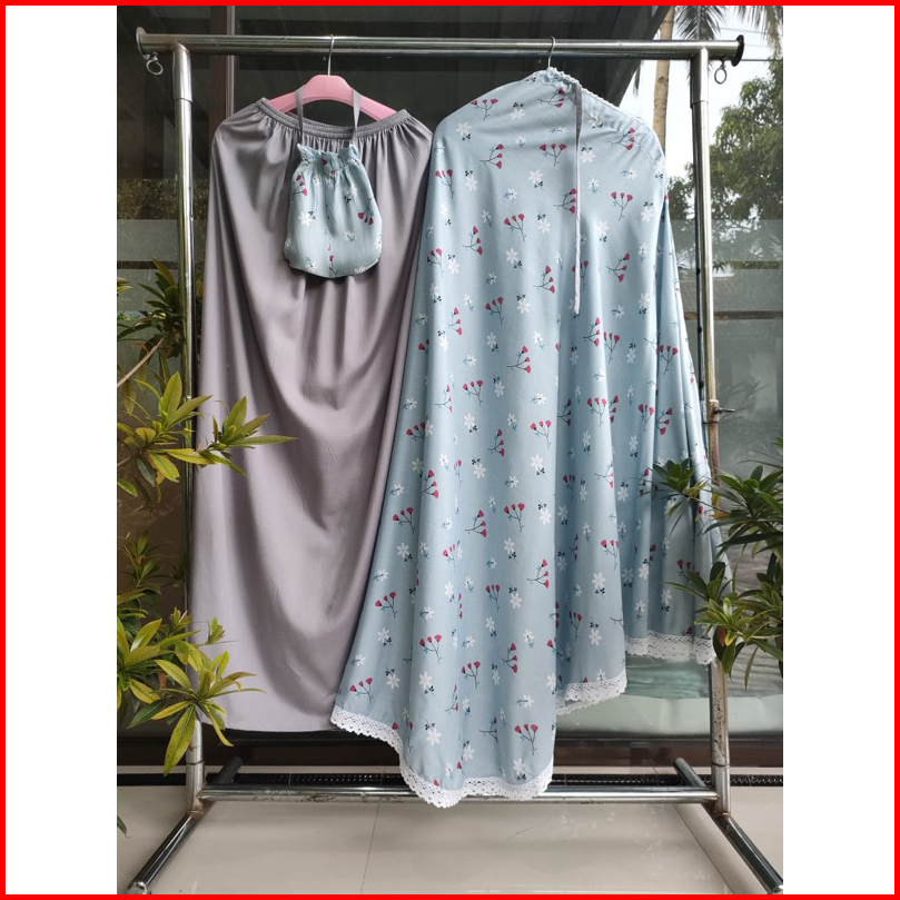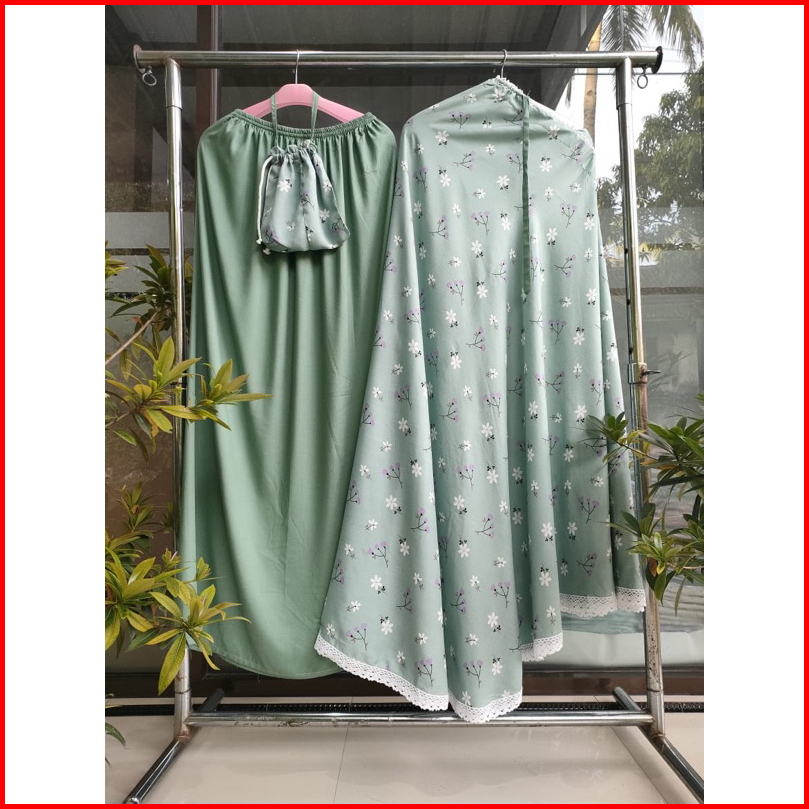 Mukena Rayon Motip Bunga Tiga Ranting Kerut Kening Free Tas
