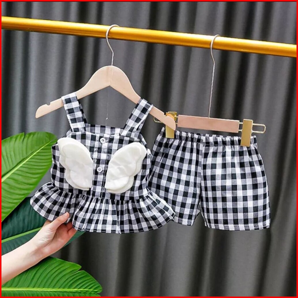 Angel Set Baju Setelan Bunga Bandana Sepatu Pergi Lucu Fashion Bayi Anak Cewek Perempuan Silucubabyshop