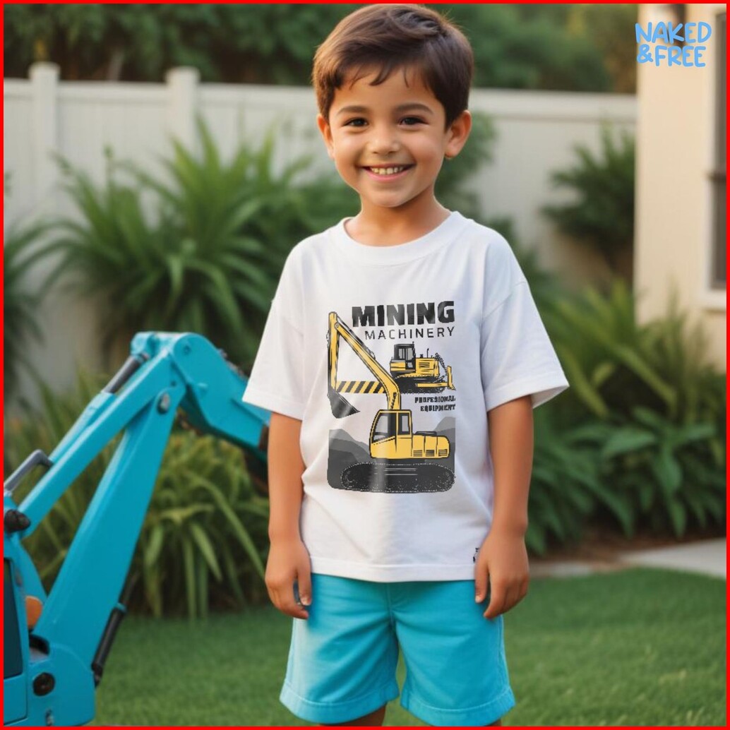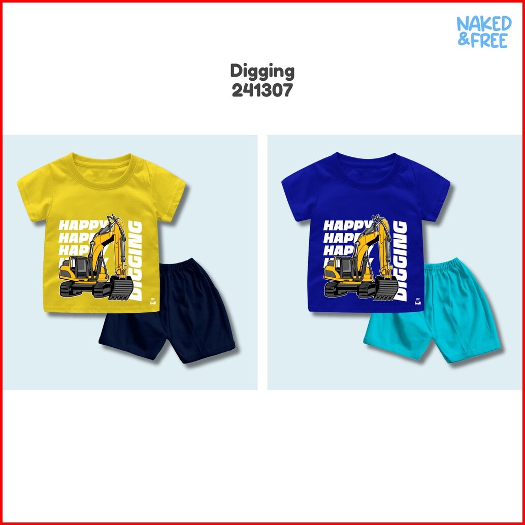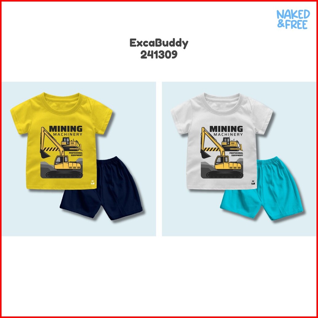 Naked Free Setelan Pendek Bayi Anak Laki-laki Excavator Series Dump Truck Digger Bahan Katun 30s