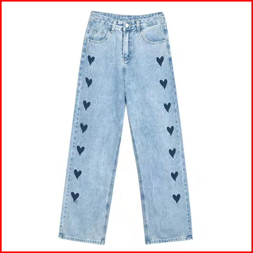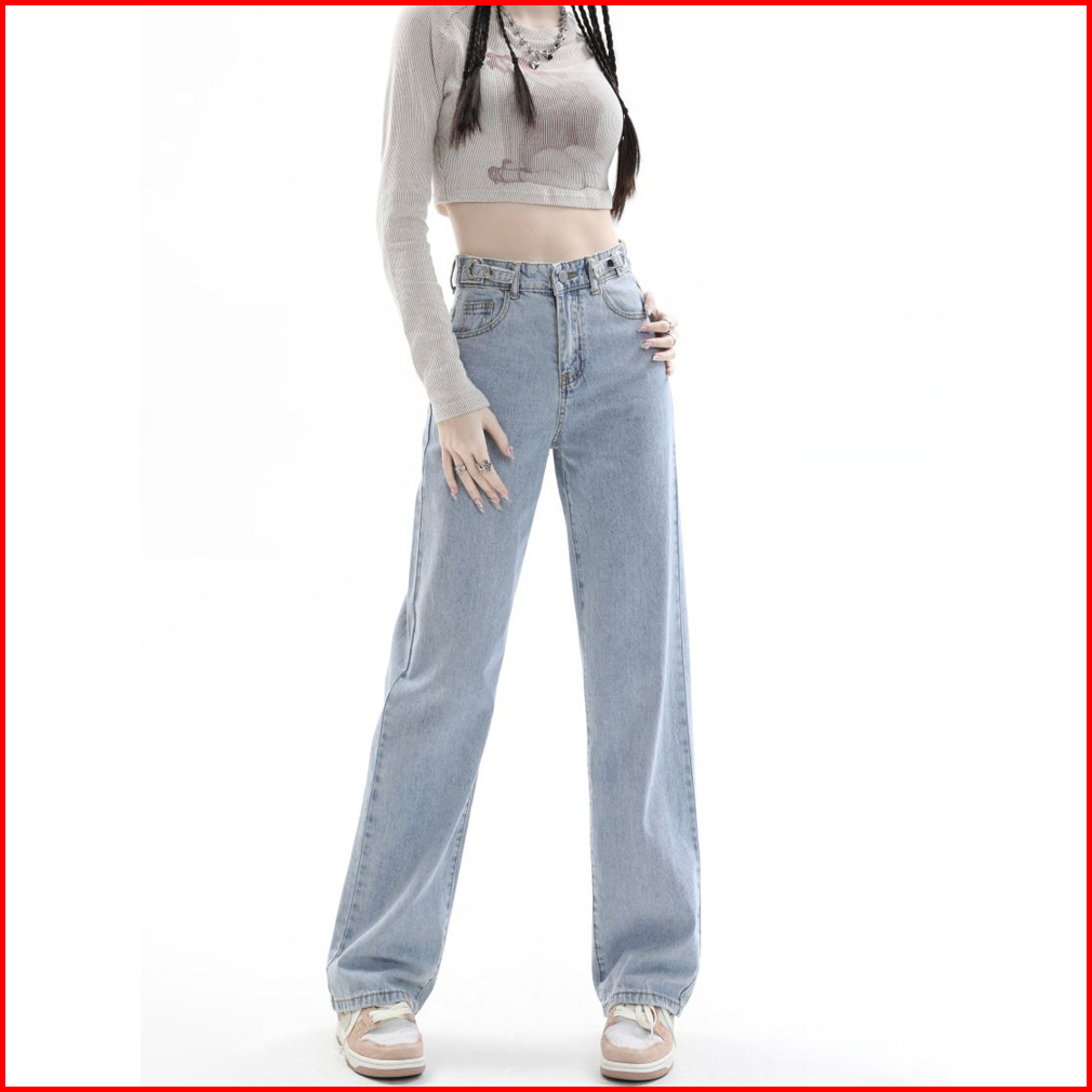 Korean Straight Loose Celana Jeans Wanita Highwaist Kulot Panjang Jeans