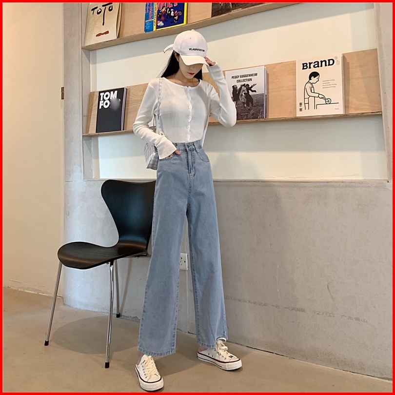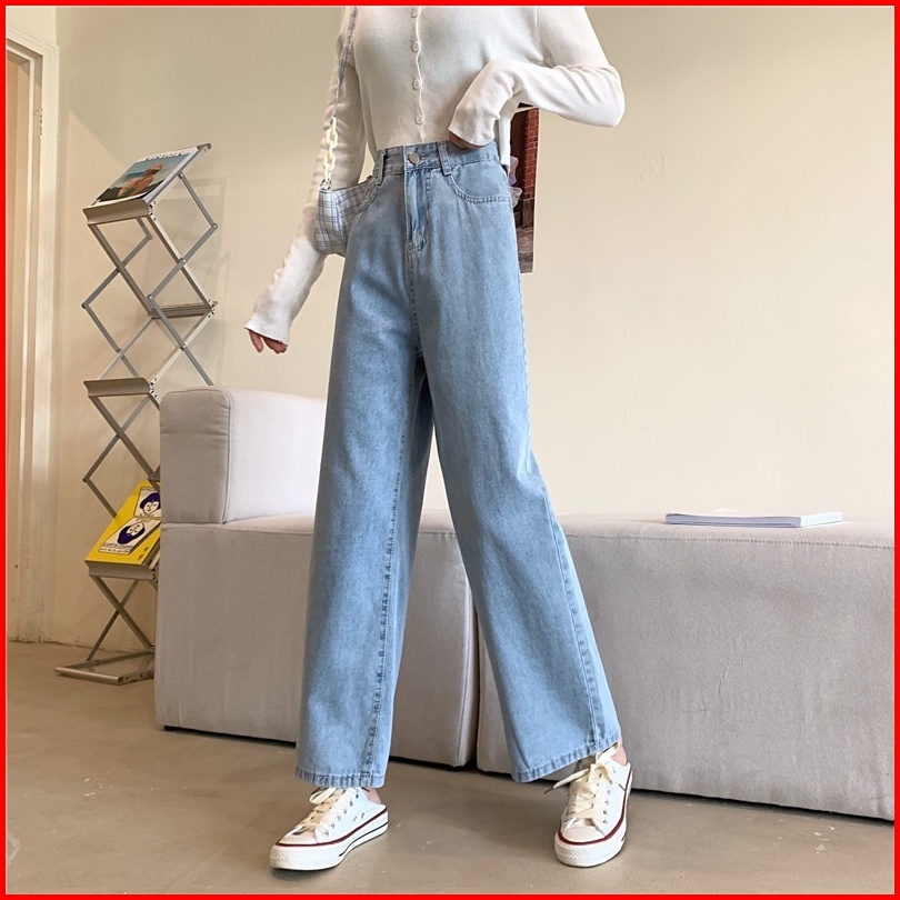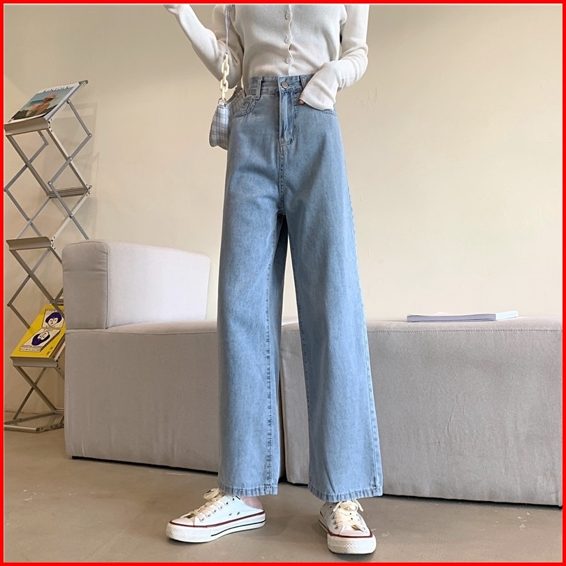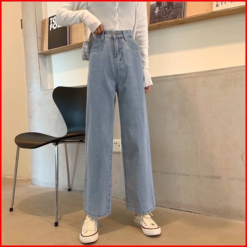 Korean Style New Biru Salju Highwaist Jeans Wanita Kekinian Longgar Wanita Pinggang Tinggi Celana Jeans