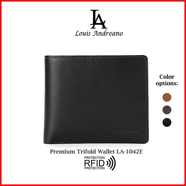 Louis Andreano - La-1042e - Dompet Lipat Pria Trifold Kulit Sapi Full Grain Premium
