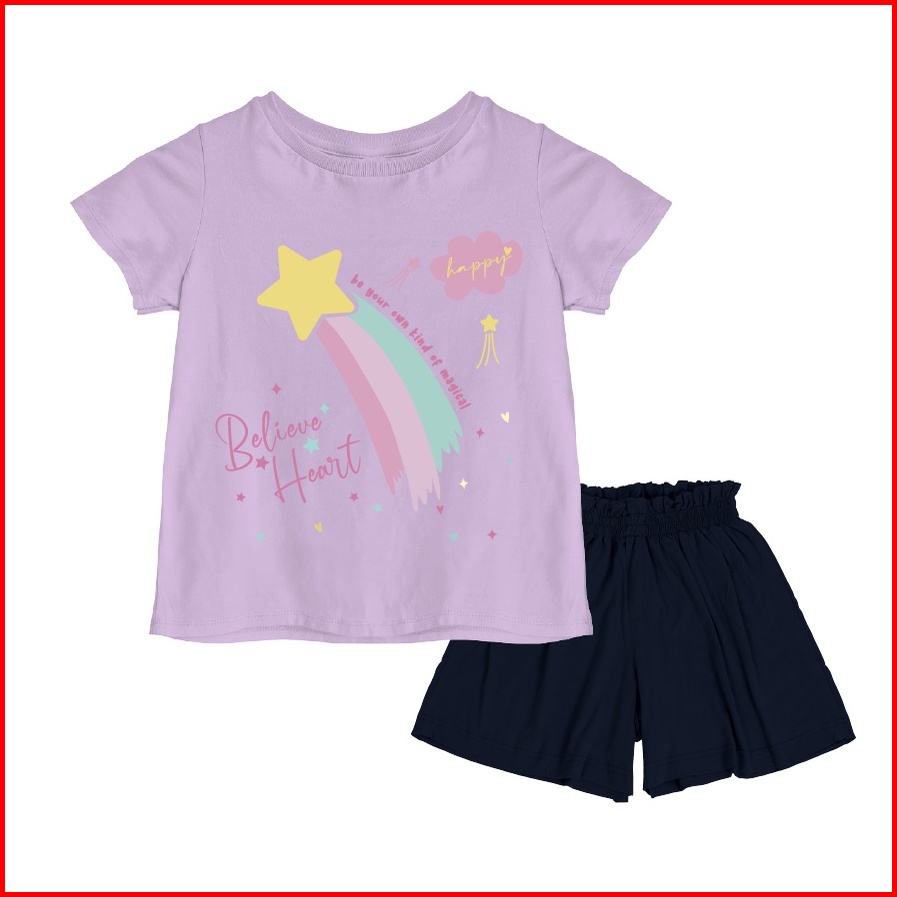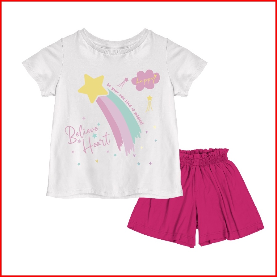 Naked Free Setelan Anak Perempuan Aline Cut Hot Pant Seri Rainbow Star With Pink Cloud