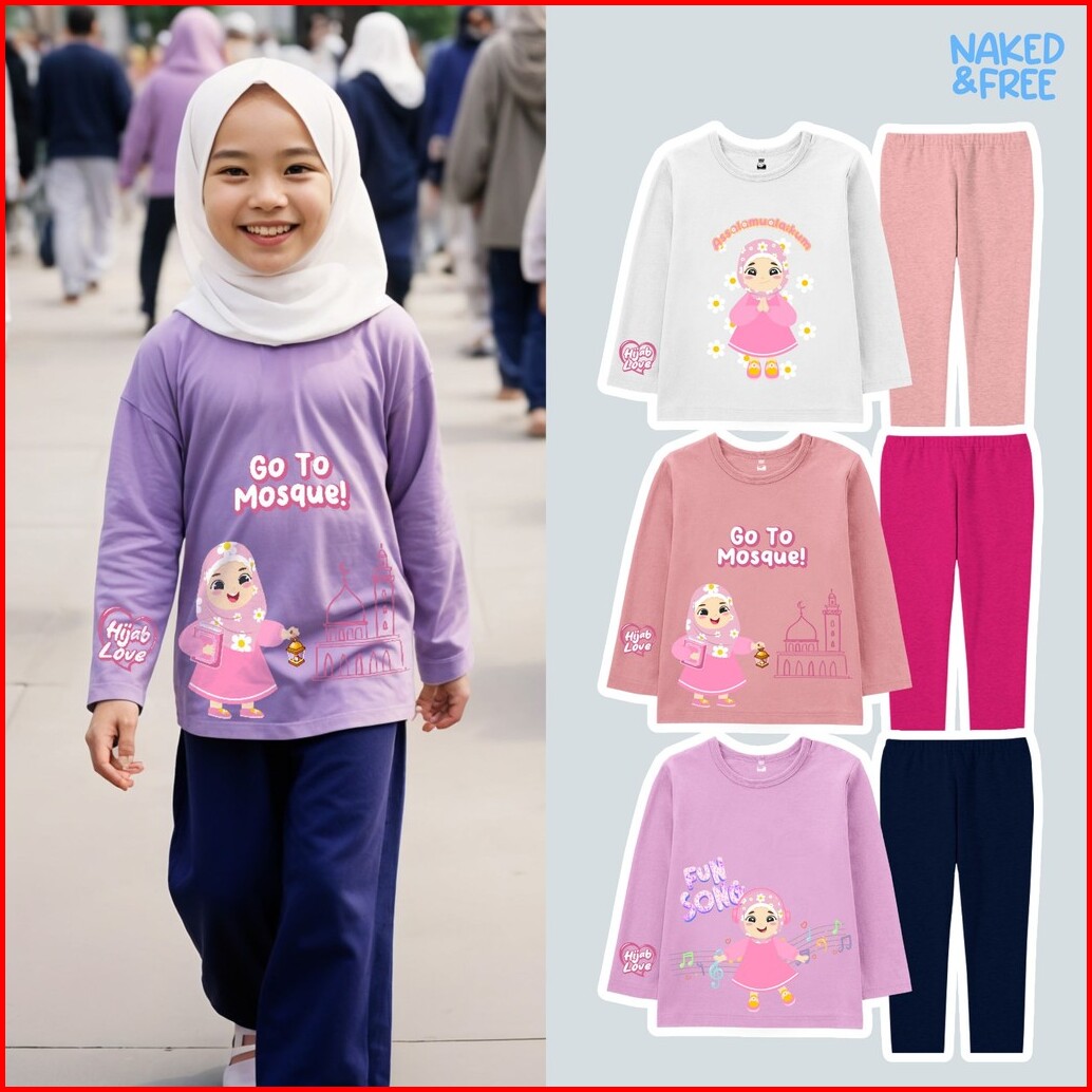 Naked Free Setelan Panjang Anak Perempuan Hijab Love Series Go To Mosque Bahan Katun Combed 30s