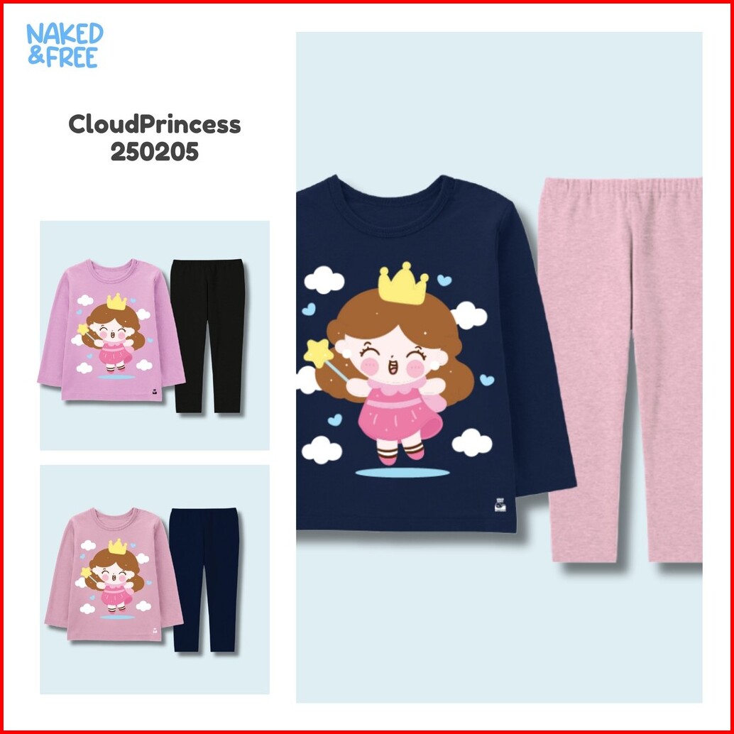 Naked Free Setelan Panjang Anak Perempuan Princess Series Cloud Cute Little Bahan Katun 30s Pri-1
