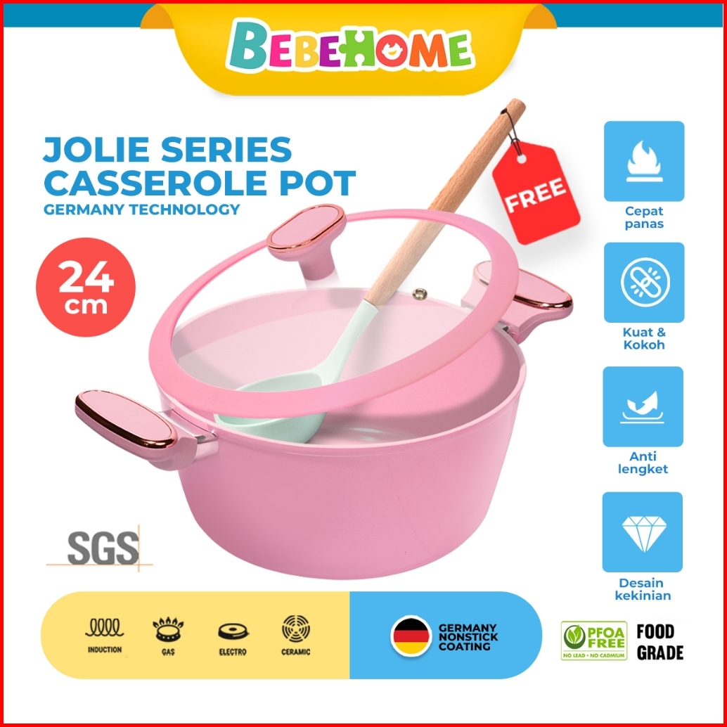 Bebehome X Tifale Aesthetic Jolie Casserole Pan 24cm Pink Panci Granit Marble Anit Lengket