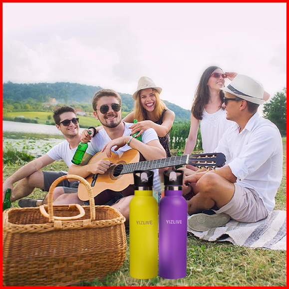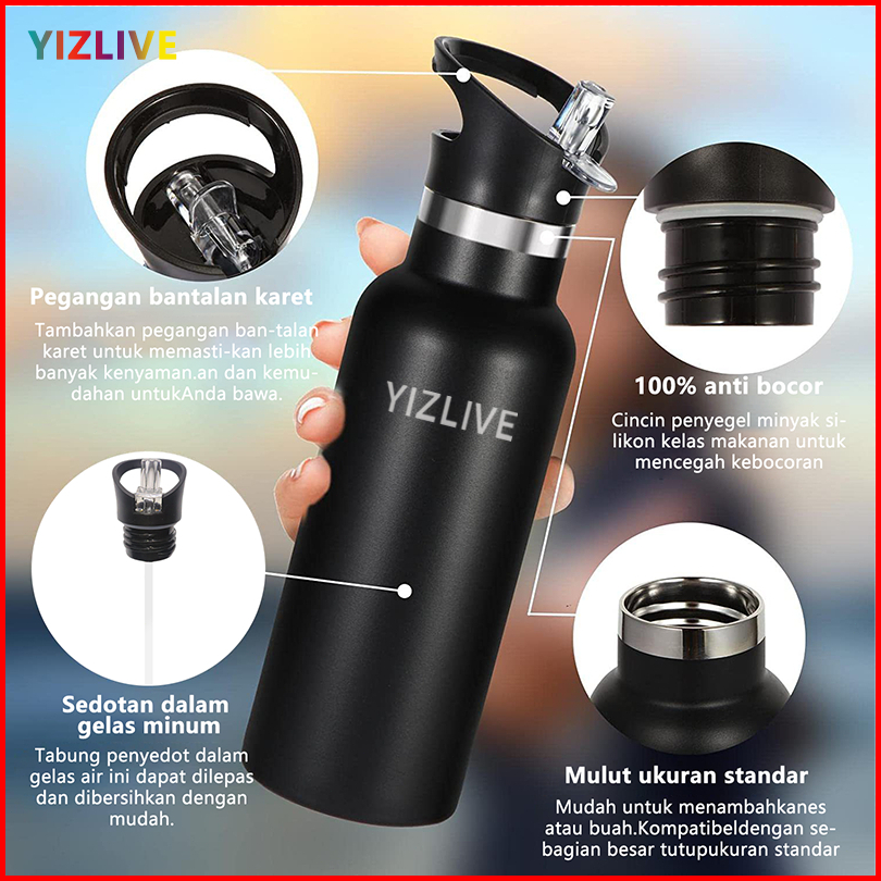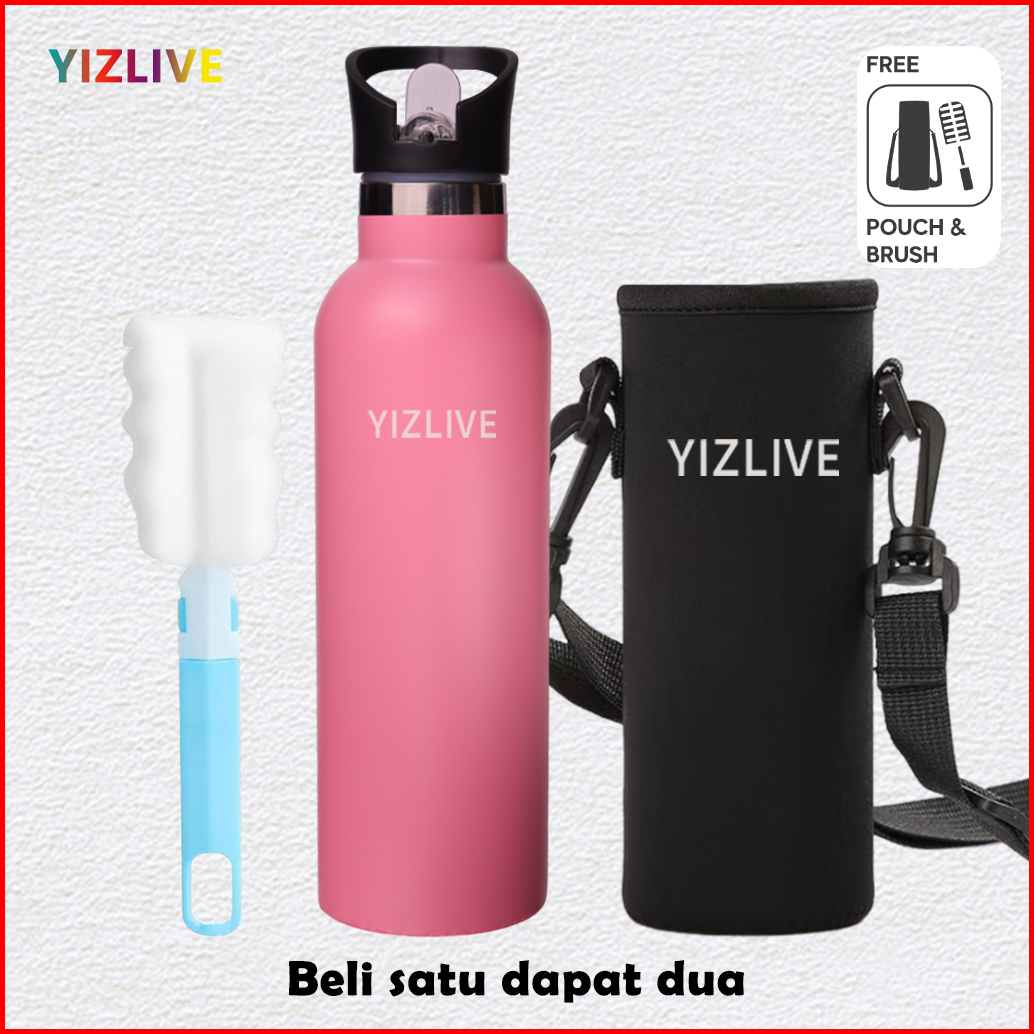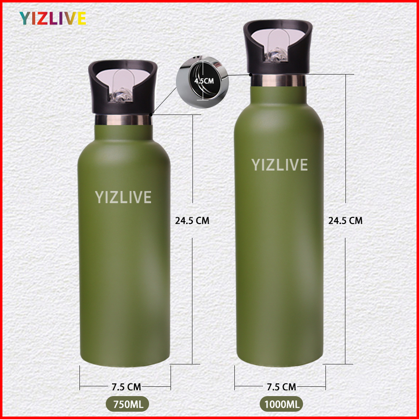 Yizlive 750 1000ml Set Peralatan Botol Minum 304 Tumbler Stainless Dengan Sedotan