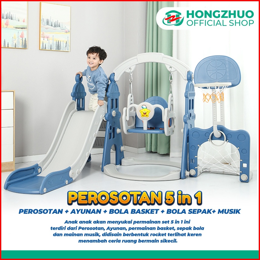 Bebehome 5in1 Perosotan Anak Musik Prosotan Anak Premium Ayunan Ring Basket Seluncuran