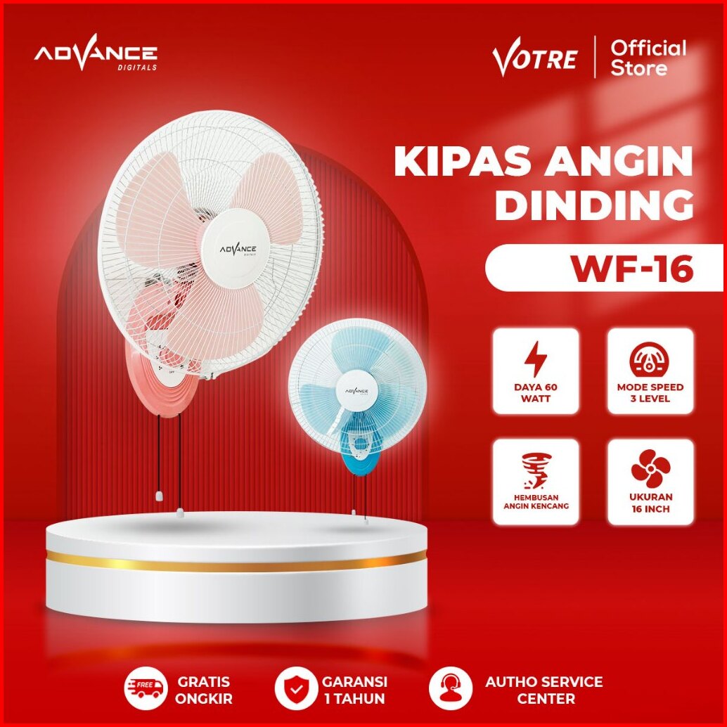 Advance Kipas Angin Dinding Wf-16 Wall Fan 16 Inch Hembusan Angin Kencang Daya 60 Watt Garansi Resmi 1 Tahun
