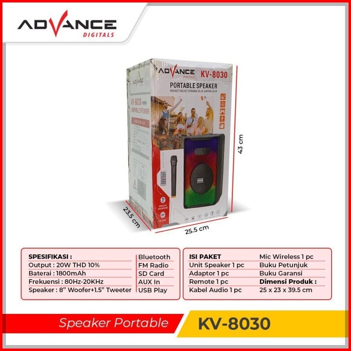 Advance Speaker Bluetooth Karaoke Meeting Speaker Portable 8inch Rgb Led Speaker Kv8030 Garansi Resmi 1tahun