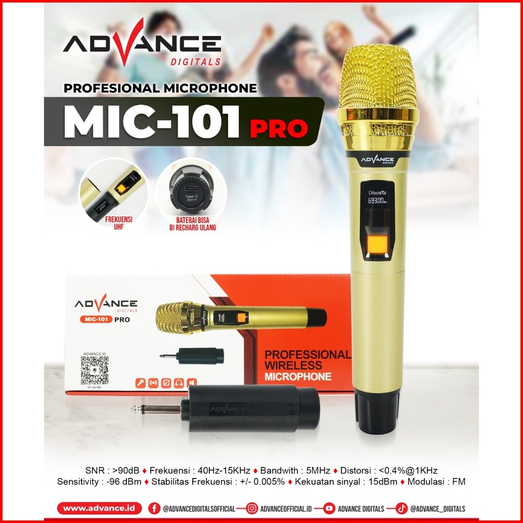 Advance Mic-101 Pro Single Mic Wireless Uhf Nirkabel Recharger Baterai Garansi Resmi 1 Tahun