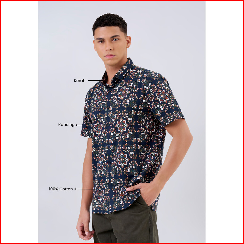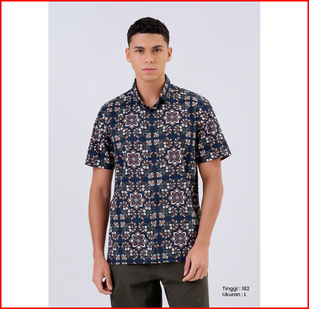 Manzone - Kemeja Batik Lengan Pendek Pria Karaka 3 Modern Fit - Dark Green
