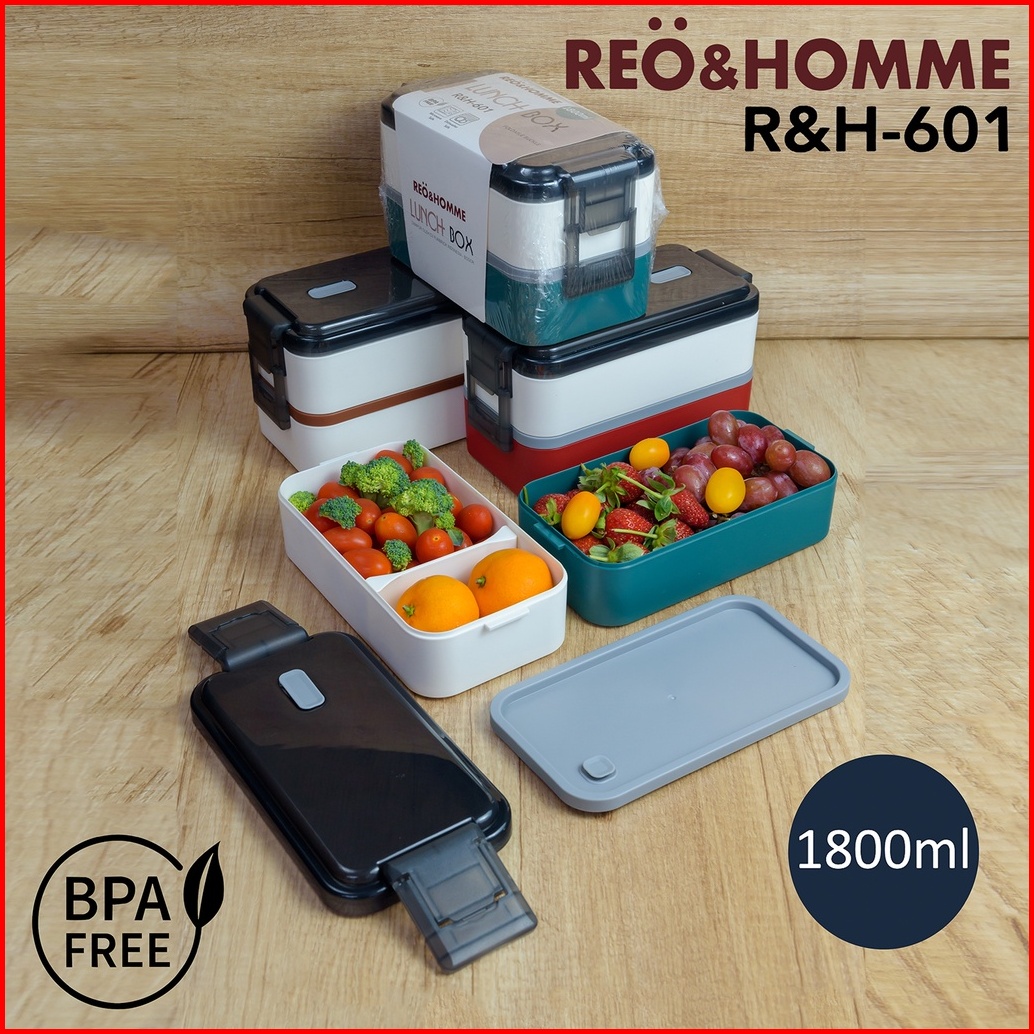 Orinoco Kotak Makan Bento 2 Susun Anti Tumpah Dan Bocor Kapasitas 1800 Ml Seri Reo Homme Two Tone Colour Rh-601