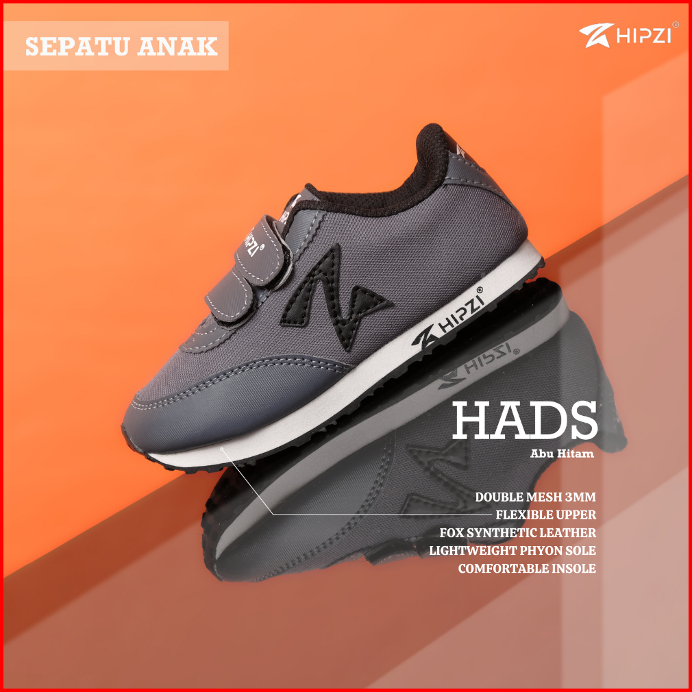 Hipzi Sepatu Anak Sneaker Anak Laki Laki Perempuan Sport Olahraga Sekolah Viral Hads Abu Hitam Terbaru 2023