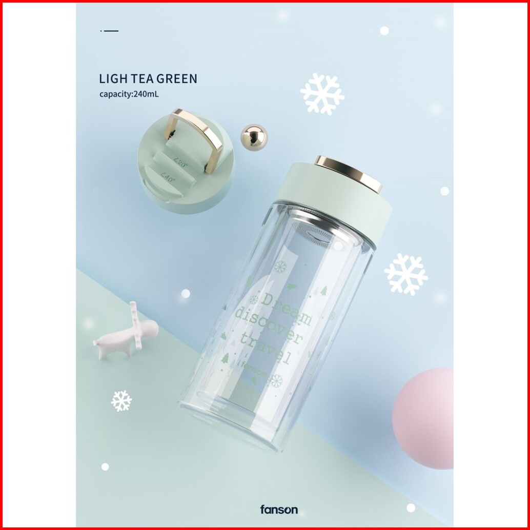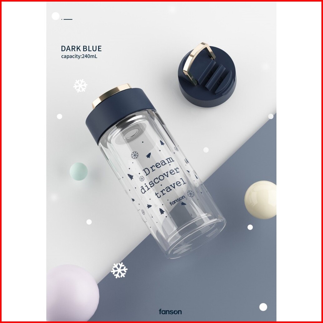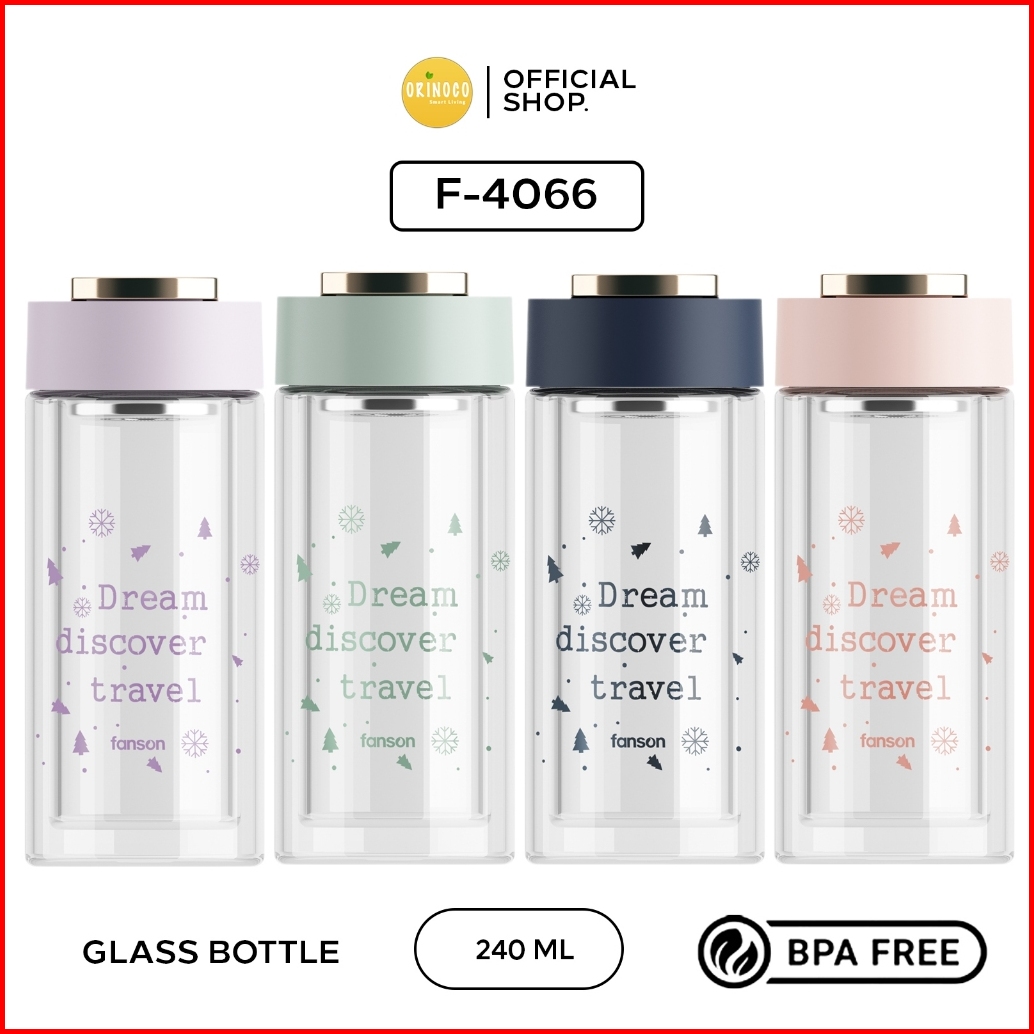 Orinoco Botol Minum Kaca F-4066 Glass Bottle Double Wall 240ml Leakprof